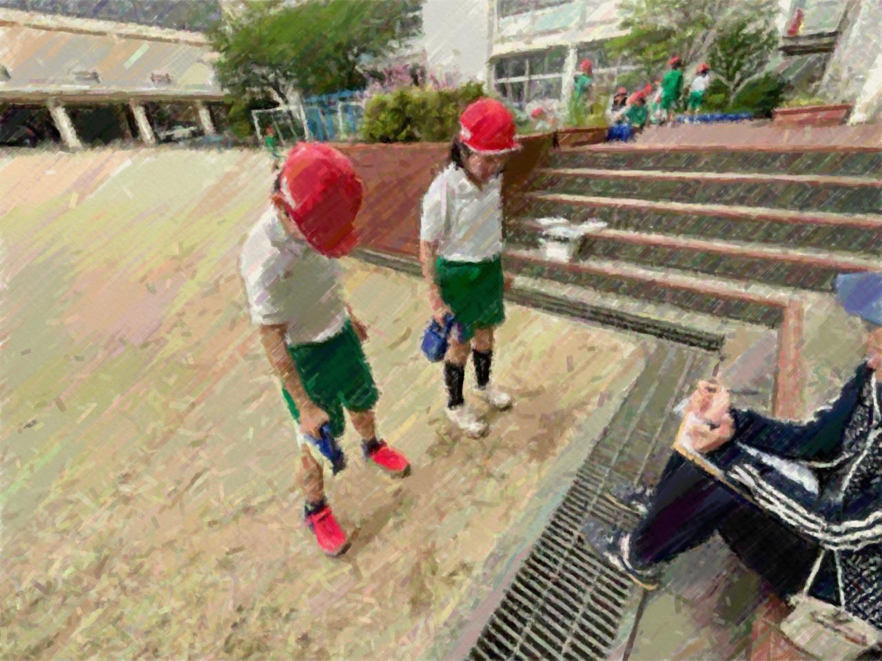 運動場では握力の測定と投擲力を測る「ボール投げ」を行いました。