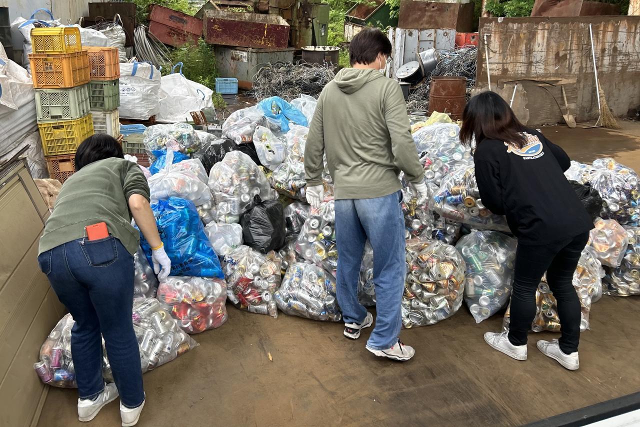 小雨がぱらつく中、PTA本部役員の方々が早朝よりお集まりくださり、PTA廃品回収(アルミ缶回収・運搬)を行いました。学校に集まっていた分をトラックに載せ、また町内会を通じて依頼した各集積所の分を回って集め、スクラップセンターに運搬。計量と荷下ろしをするなど、本部役員の方々が手分けして作業をしてくださいました。