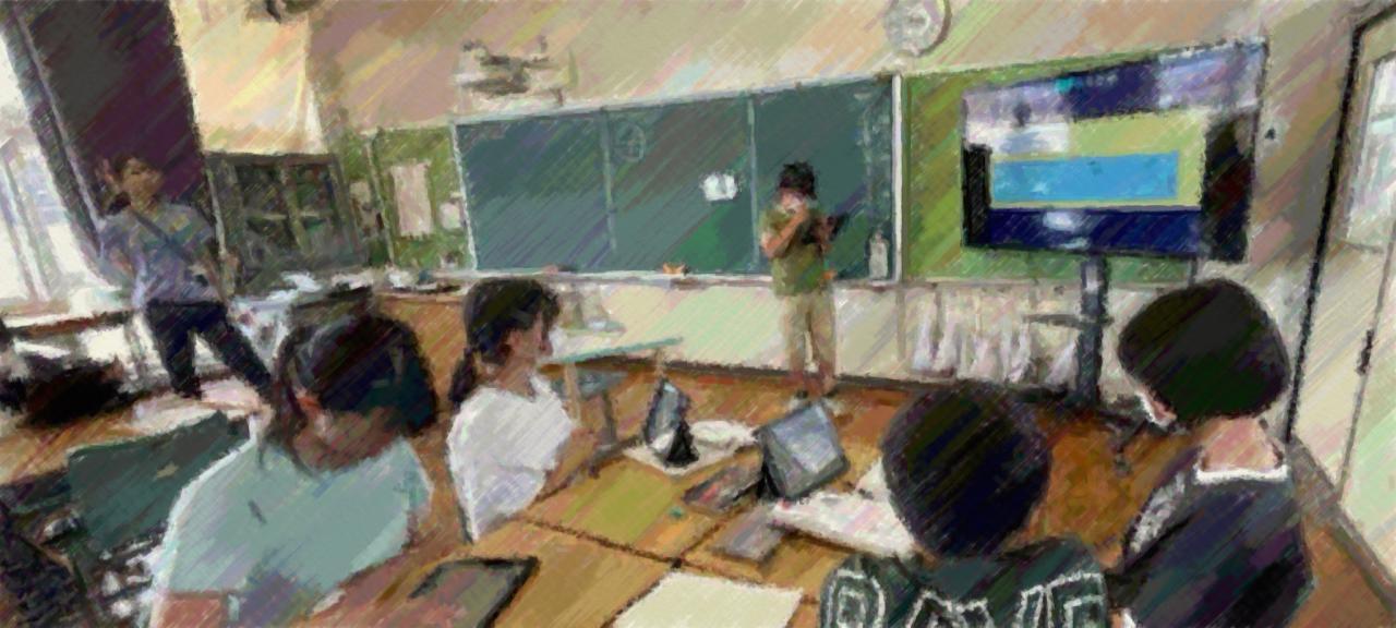 クラスのみんなに説明する場合は、前に出てプレゼン。自分の作業画面をすぐに提示することができます。