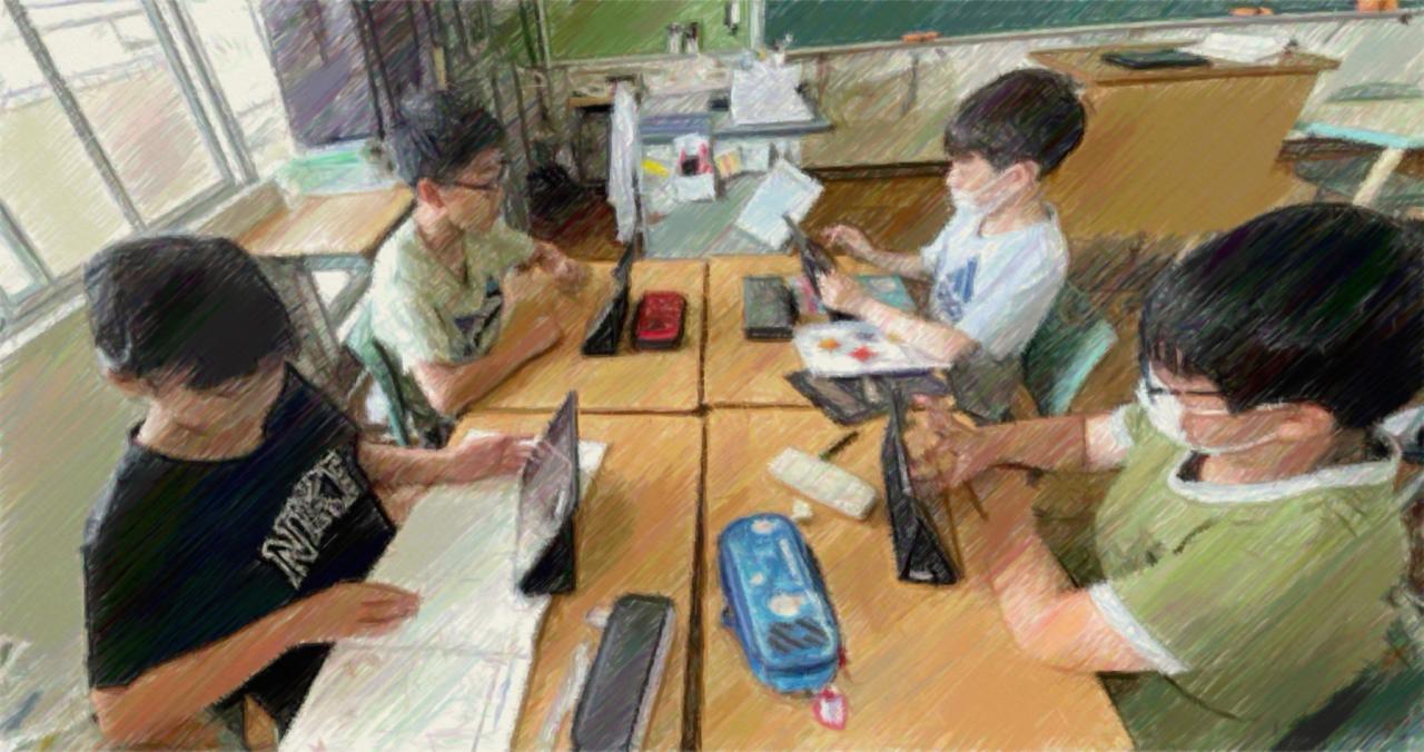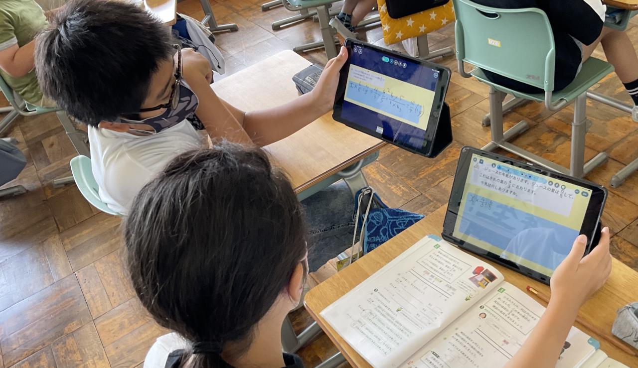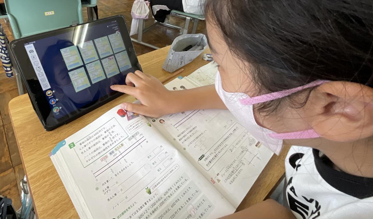 タブレットを使い始め、従来と大きく変わったのが「他者参照(たしゃさんしょう)」。友達のやり方や考えが手元の画面ですぐに見えます。従来は挙手して発表しなければ、そして発表者が提供する情報しか共有できませんでした。こうすると多くの人の考えを見比べることができ、即時に自分の考えを見直す機会と観点が生まれます。