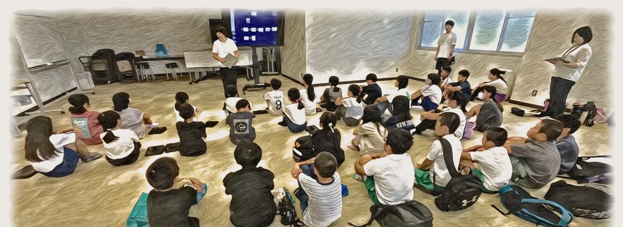 午後からは一緒に活動する安乎小学校の子たちと交流会。安乎小にお邪魔しました。