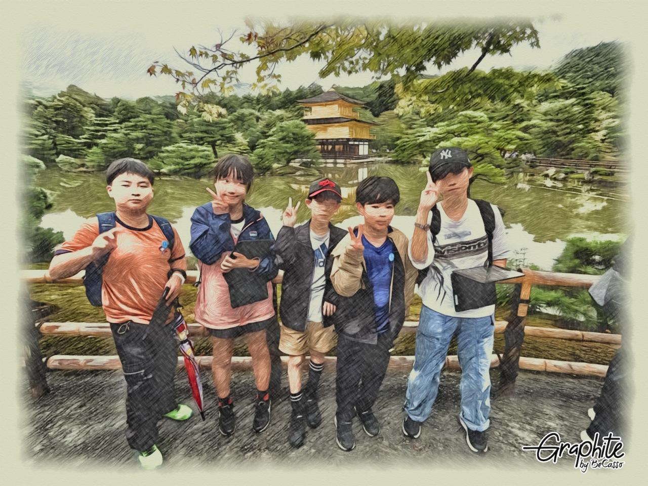 今日の最終見学地は金閣。池に映る逆さ金閣も辛うじて見えました。