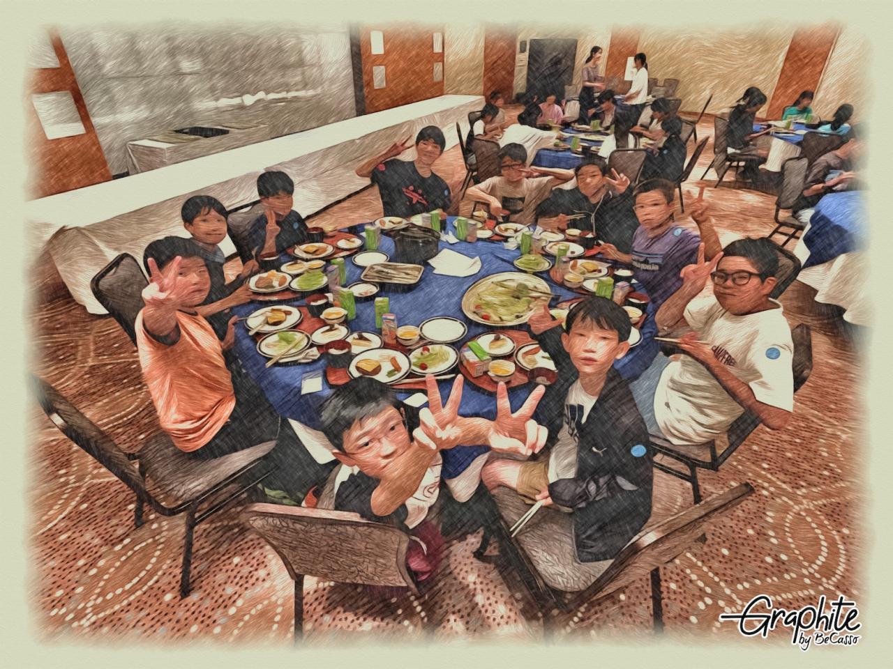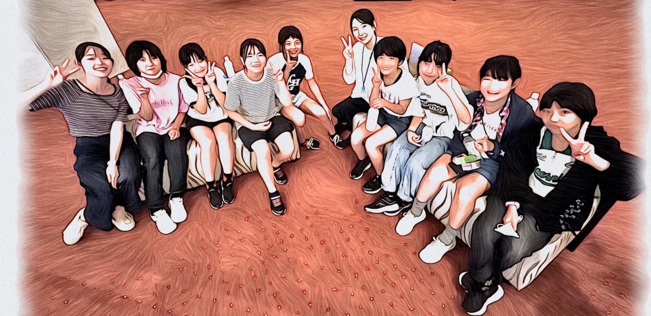宿舎への道が渋滞し、30分ほど遅れましたが無事到着。夕食を食べた後はくつろぎタイムを楽しみました。