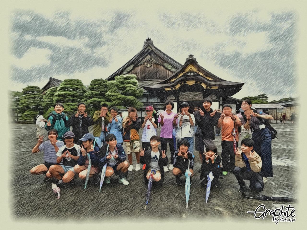 そして二条城。この頃には雨も止み、傘をささずにスムーズに移動できるように。鶯張りの廊下の仕掛けも、縁がわを下から覗いて確かめられました。