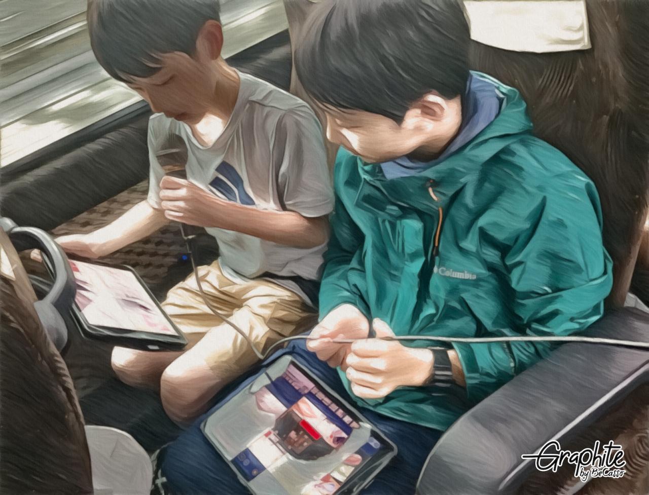 これまで調べてきたことをスライドを示しながら互いに説明し、感想を交流し合いました。タブレットを持っているので、座席についたままのバス移動の時間も学びの交流が可能です。