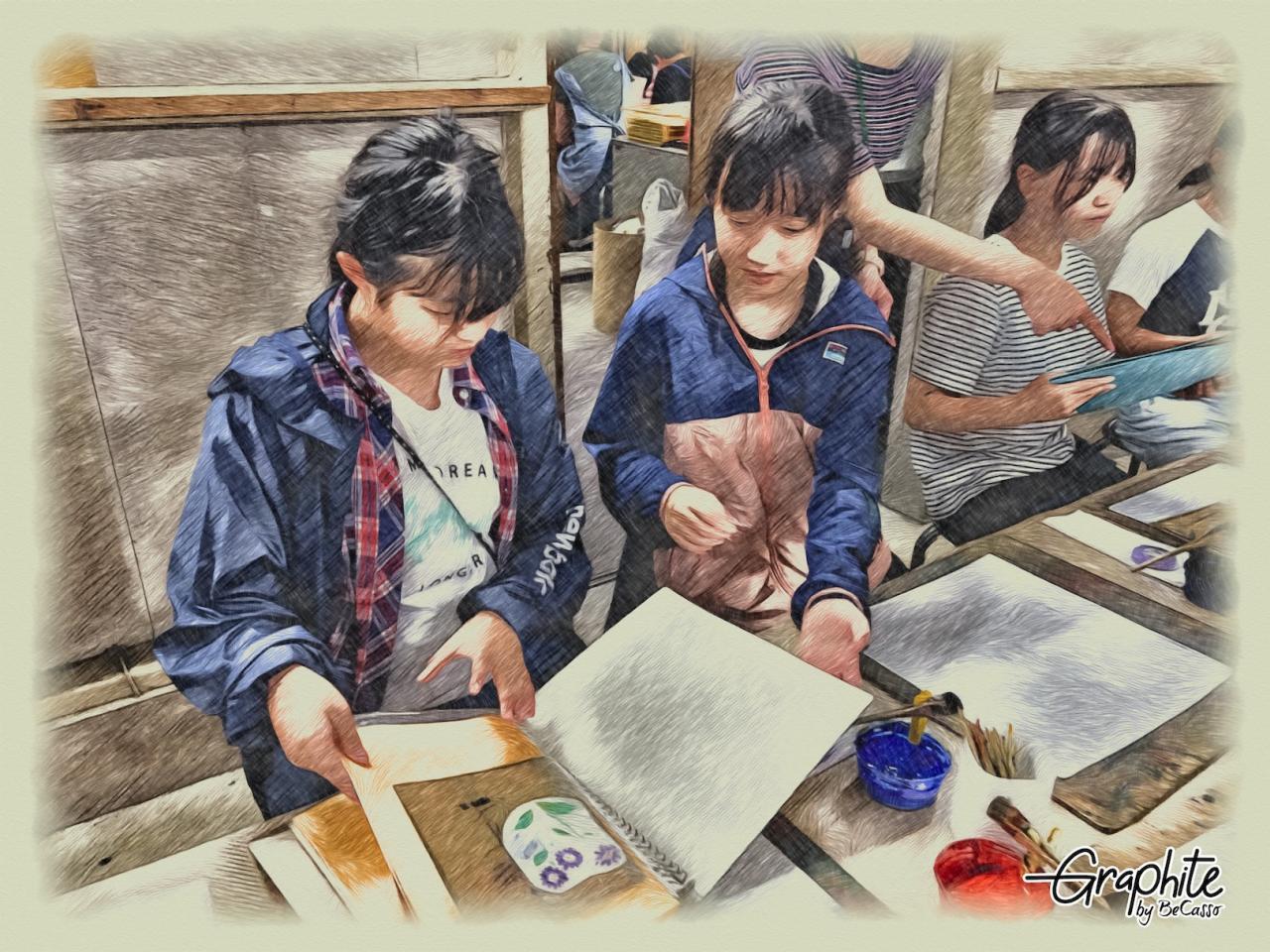 午後からは友禅染体験へ。どの人も素敵なハンカチが出来上がりました。家に帰ったら、当て布をして高音スチームのアイロンを当てる、とのことです。
