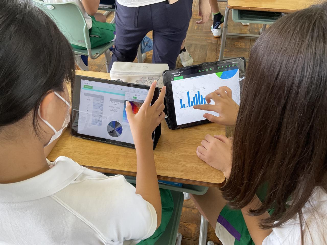学習活動で「整理・分析」や「表現・まとめ」をするときは、考えや主張の根拠となるデータを、表やグラフで示すことが必要になる時があります。このアプリを使うとデータを見やすく表を整えたり任意のグラフに表したりだけできるでなく、色や目盛りの値、大きさを変えたり、異なる種類のグラフに変換したりの操作が簡単にできるなど、個々にカスタマイズが可能です。