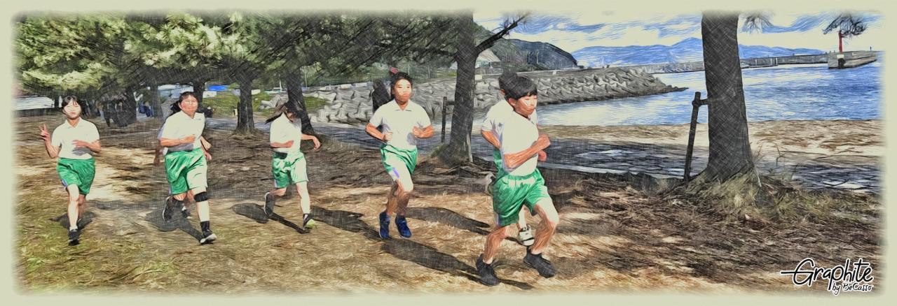 数年来、本校ではこの旧炬口海水浴場を拠点にしたコースで実施してきましたが、児童がレースを行うには安全確保が難しい危険な箇所が多々増えてきました。次年度以降は大会の持ち方も含め、児童が安全に持久力を高めることができる方法への変更を検討していきます。