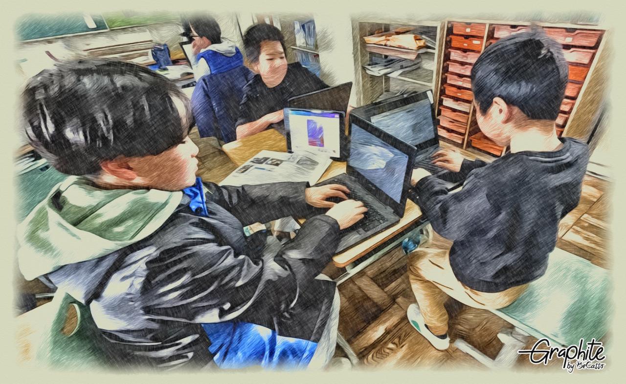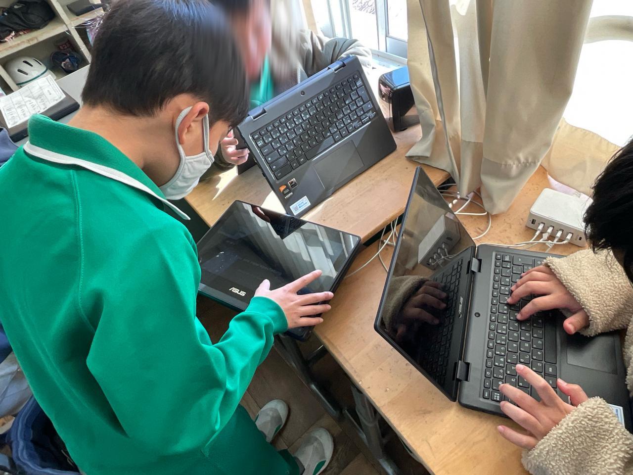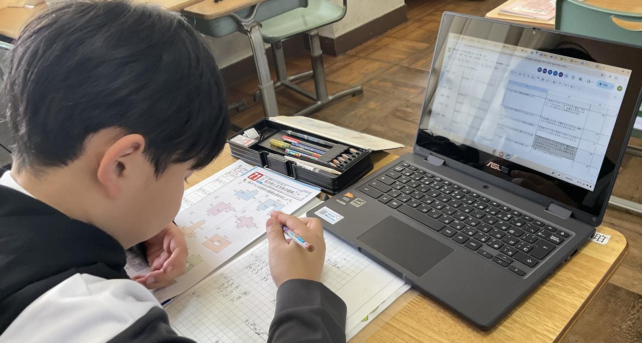 授業でiPadを使うかChromeBookを使うかは子どもたちの判断に任せていますが、入力や制作等の細かな操作をするときはChromeBook、情報を収集したり確認したりするのはiPadと、それぞれ上手に使い分けているようです。4年生にもなるとキーボード入力の方が早い子が多いので、こちらを使っている割合が多いように見えます。