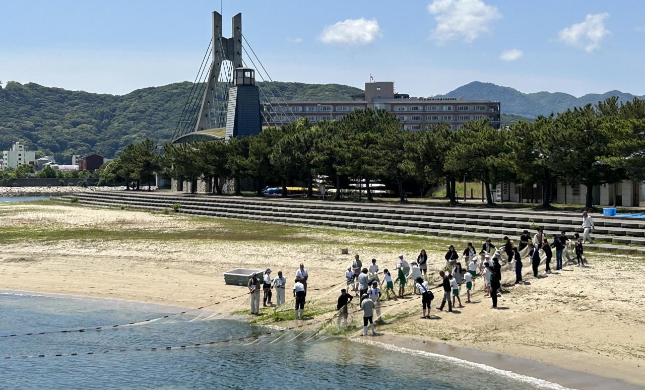 6年生の親子行事は地引網体験。炬口漁業組合と洲本農林水産課(県)のご協力で、今年も実施させてもらいました。