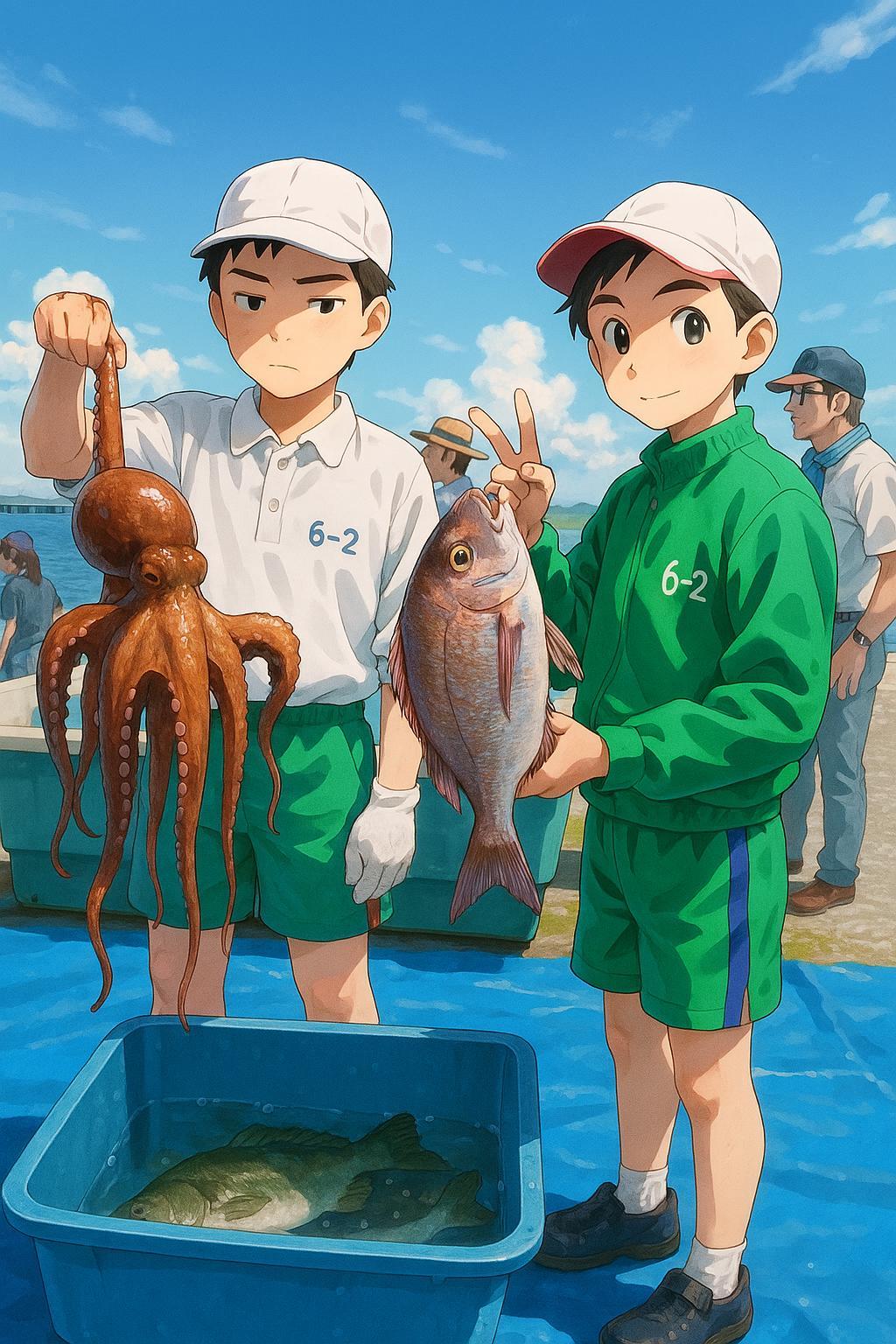 洲一の校区が海に面しているからこそ、都会や山の中ではできない貴重な体験をすることができました。これも漁協の皆さんが大勢で準備と後片付けをしてくださったおかげです。本当にありがとうございました。