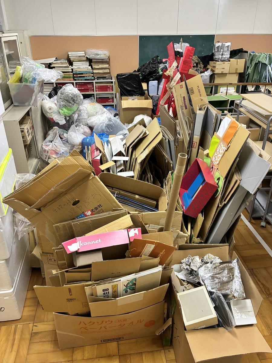 本校の児童棟1階には、子どもたちが使わない部屋があります。図書室の隣にあるPTA室と呼ばれる部屋です。中には、かつて学校で使っていた絵画の図録などの図書をはじめ、これまでのPTA活動で使われていた物品が大切に保管されていました。ただ長年の活動の中で、すでに使われなくなったものもたくさんあり、室内が手狭になりましたので、この度2日かけて整理と搬出をしていただきました。おかげさまですっかりきれいになり、これまで見えなかったきれいな床も見ることができるようになりました。今後も大切に使っていきたいと思います。ありがとうございました。