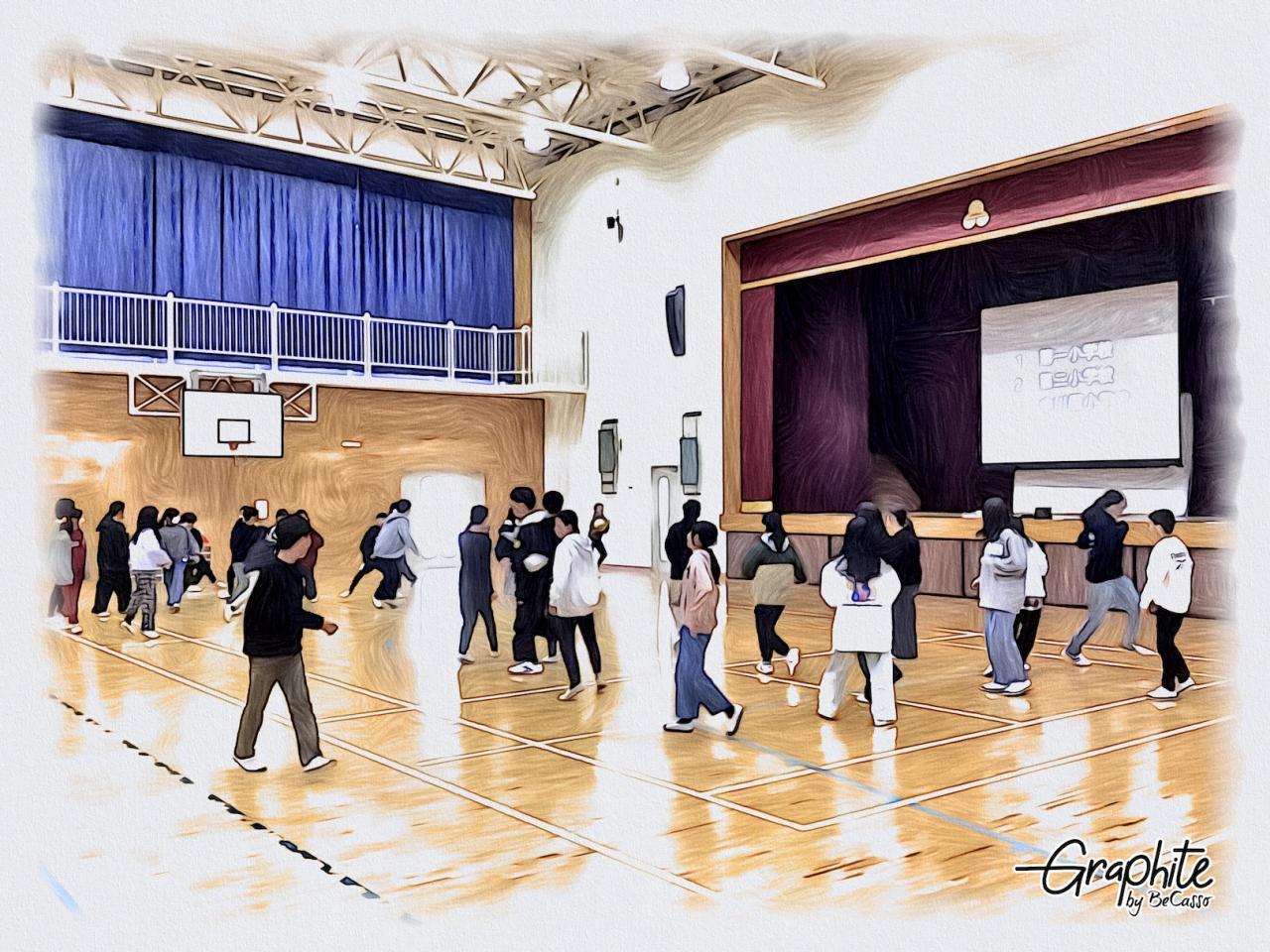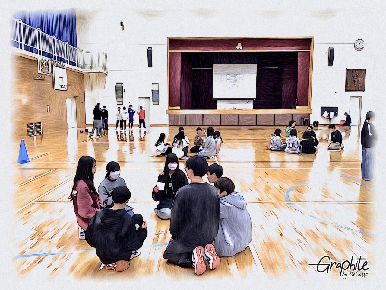 火曜日に洲浜中学校進学予定児童が集まり、交流会を開催しました。洲浜中学校の説明会に合わせて例年開催しています。今年は本校を含め5校から子どもたちが集まり、交流を行いました。各校で分担し、楽しいレクリエーションを考えていました。洲一小は、「レッドホワイト」をしました。たったりしゃがんだりしながら、赤白2色に塗られたカードを自分の色に変えていきます。最終的に自分のチームの色が多いほうが勝ちという、シンプルではありますが、仲間との声かけや作戦がカギを握るゲームです。体も心もほぐれて楽しそうでした。そのあとNGワードゲームやドッヂボールで楽しんだ6年生は、一緒に洲浜中学校の授業見学と説明会に参加しました。