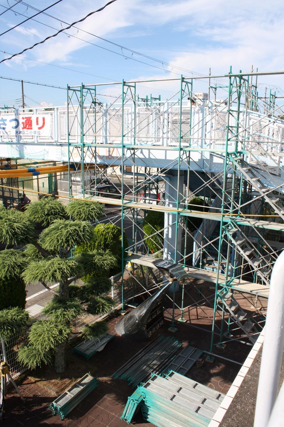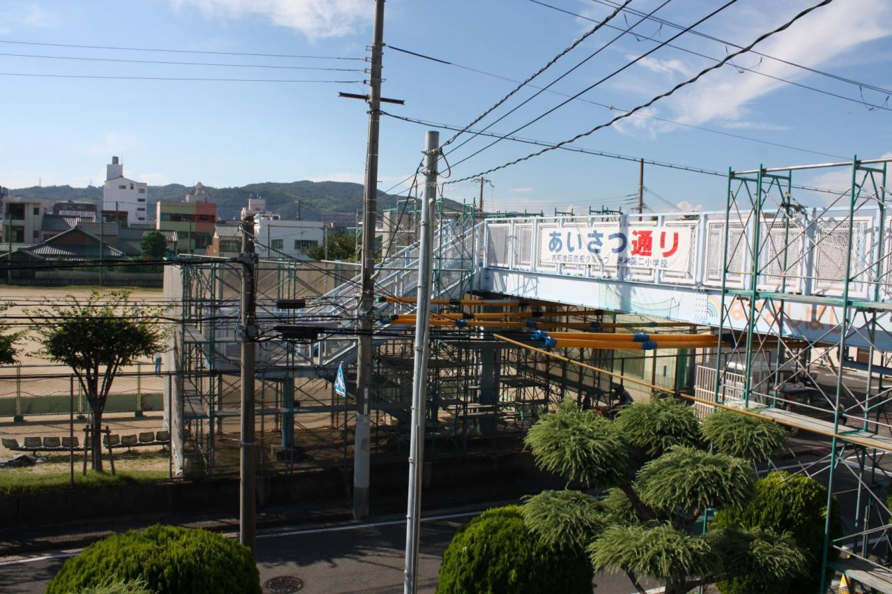 なお、児童については各学年でも安全指導を行いますが、付近での自転車の運転等については、各ご家庭でも注意喚起をお願いいたします。なお工事期間は8月いっぱいを予定しております。さて、新しいなかよし橋はどんな姿をみせてくれるのか、今から楽しみです。