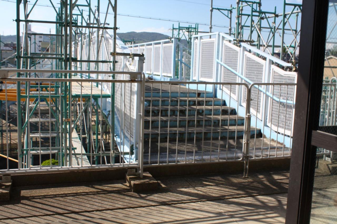 本日より外運動場と校舎をつなぐ「なかよし橋」の補修工事が本格的に開始されました。工事にともない、なかよし橋の校舎側ならびに外運動場側の入口付近に柵を設置しております。