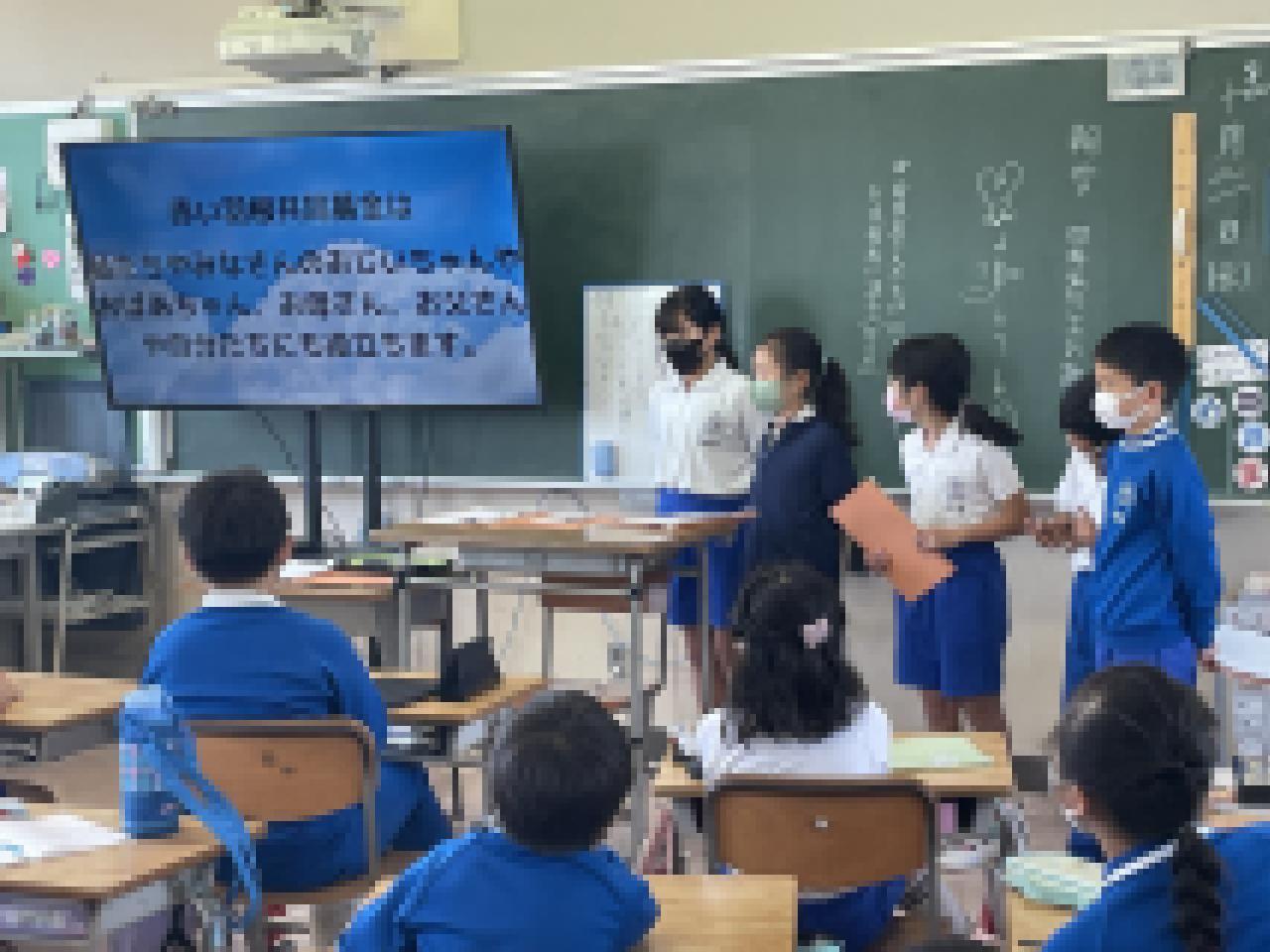 4年生は福祉体験学習を重ね、相手の立場に立って考え、行動することの意味や大切さを学んできました。「ふだんの くらしを 幸せに」という福祉の目的を叶えるための資金集めに、自分達も参画したいという願いを持って、今朝は各教室で共同募金のPR活動。オープンスクールでも4年生の有志が廊下に立ちますので、ぜひご協力をお願いします。