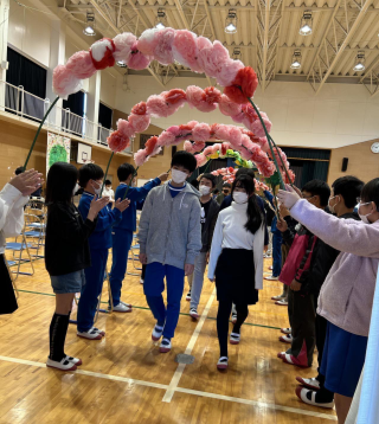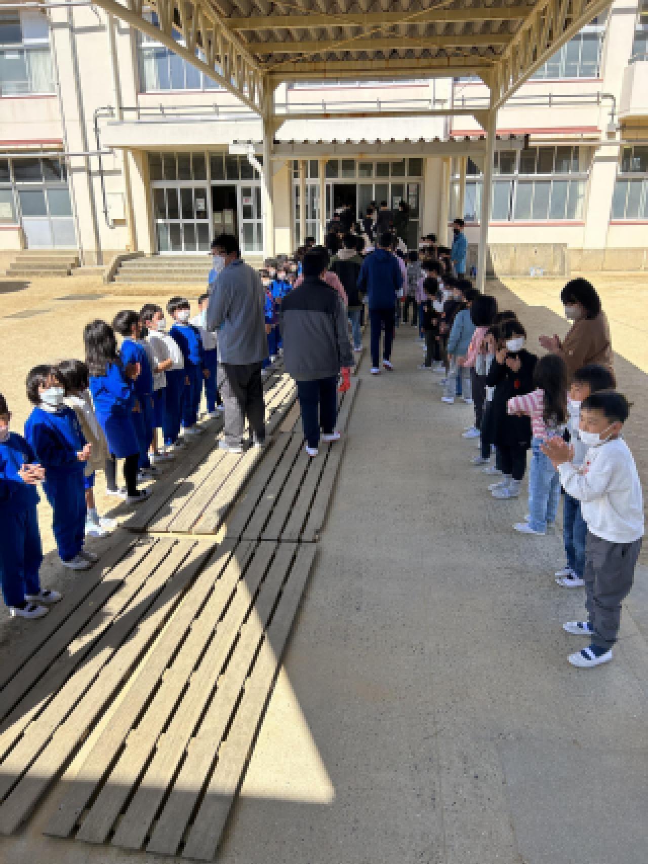 花道を作って退場...!? なんと、外には1年生が待っていてくれました。