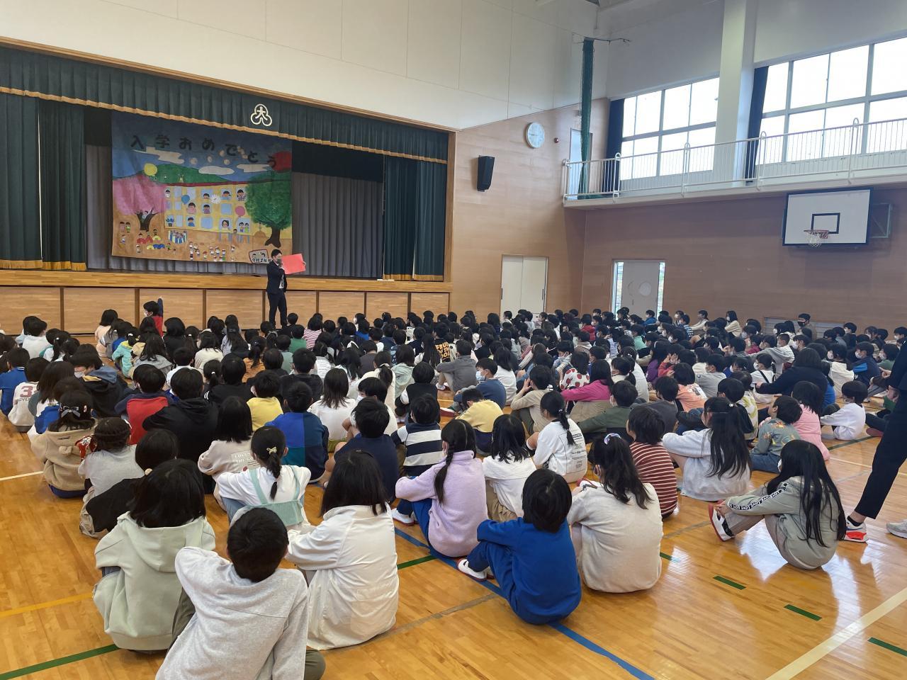 令和四年度の教育課程が修了し、体育館で修業式を行いました。校長先生からは「たくさん遊びましょう」、生徒指導の先生からは「事故や事件にあわないように安全に生活しましょう」とのお話がありました。マスクをつけてでしたが、全校生で校歌を斉唱したのは本当に久しぶりでした。