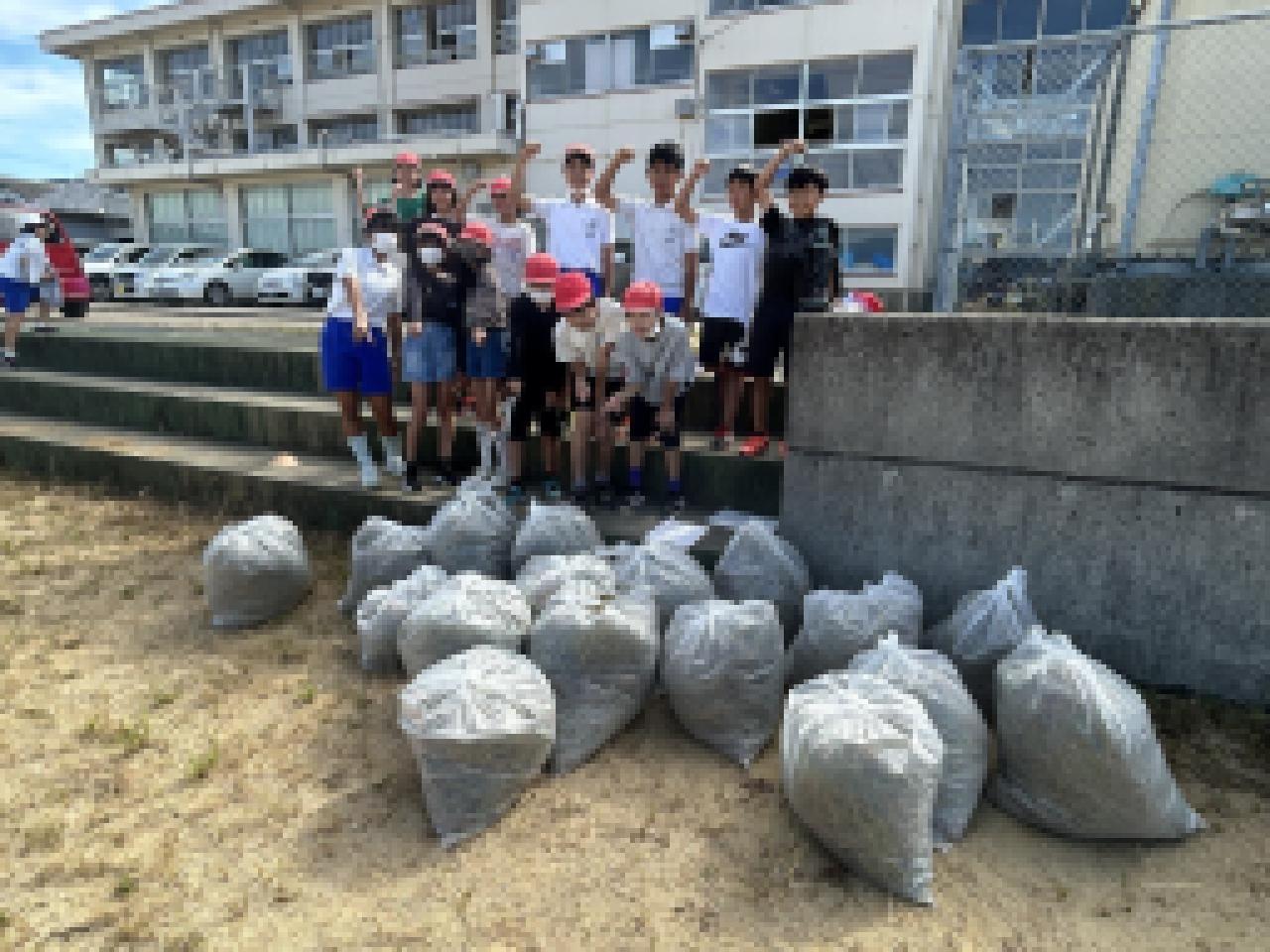 1人で取るとキリがないほどですが、300人で取るとたちまち袋が一杯になりました。結果は赤チームが6袋、青、黄、緑チームが4袋ずつで、赤チームの優勝🏆でした。全部で18袋も。運営委員の皆さんがまとめてごみ収集場に運んでくれました。