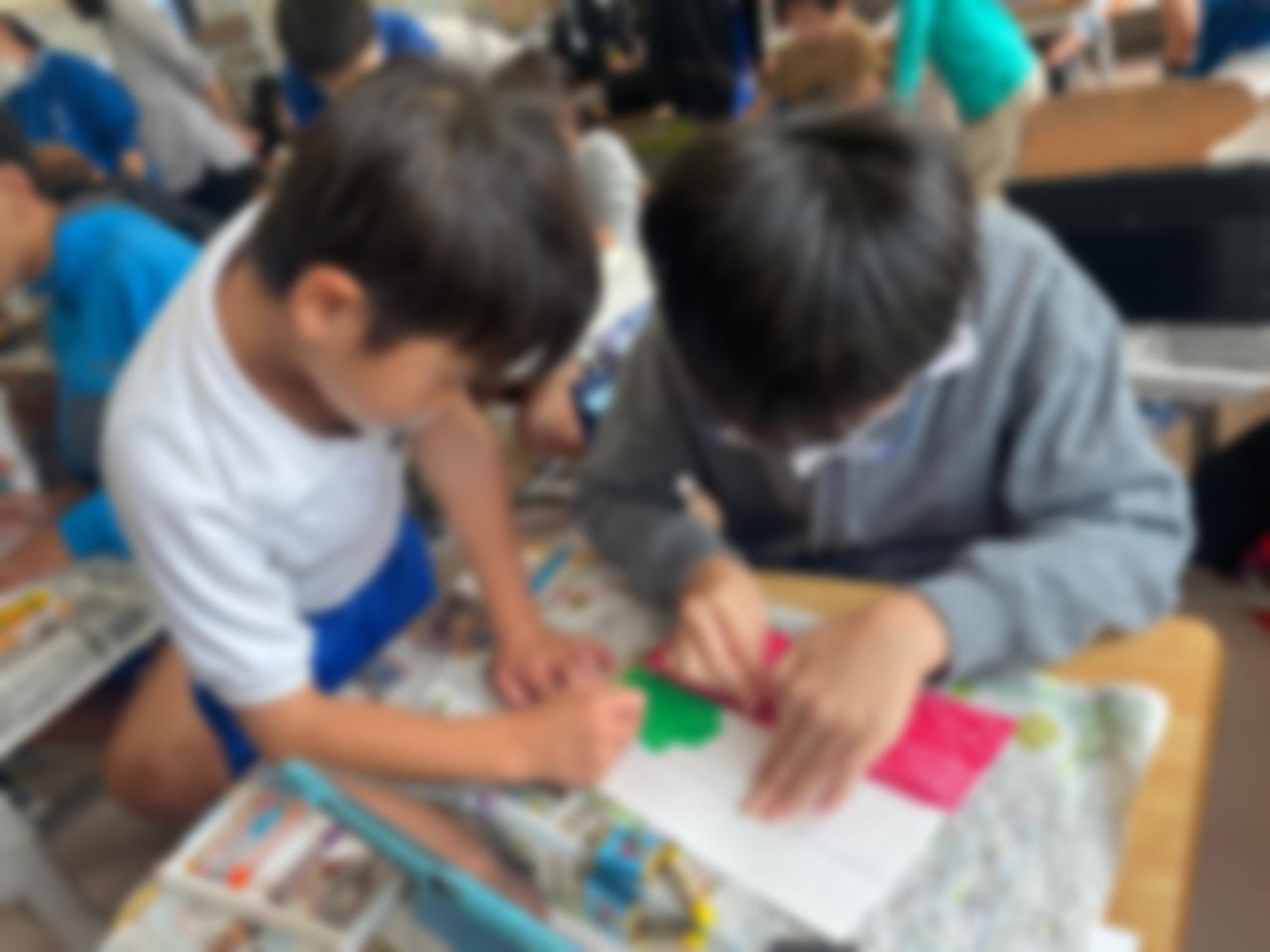また1,6年生が協力して、万国旗を作りました。6年生がタブレットで国旗を調べ、それを見ながら1年生と一緒に描くことで、ペアで仕上げる喜びを感じ合っていました。素敵な万国旗を楽しみにしていてください。