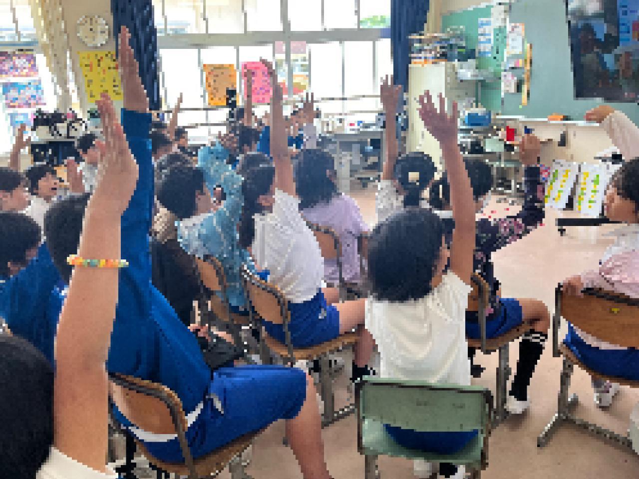 加茂小学校や由良小学校の発表を聞いて、いつも過ごしている大野小学校とは違うところがたくさんあることに気づいたり、改めて大野小学校の魅力に気づいたりしている児童もいました。