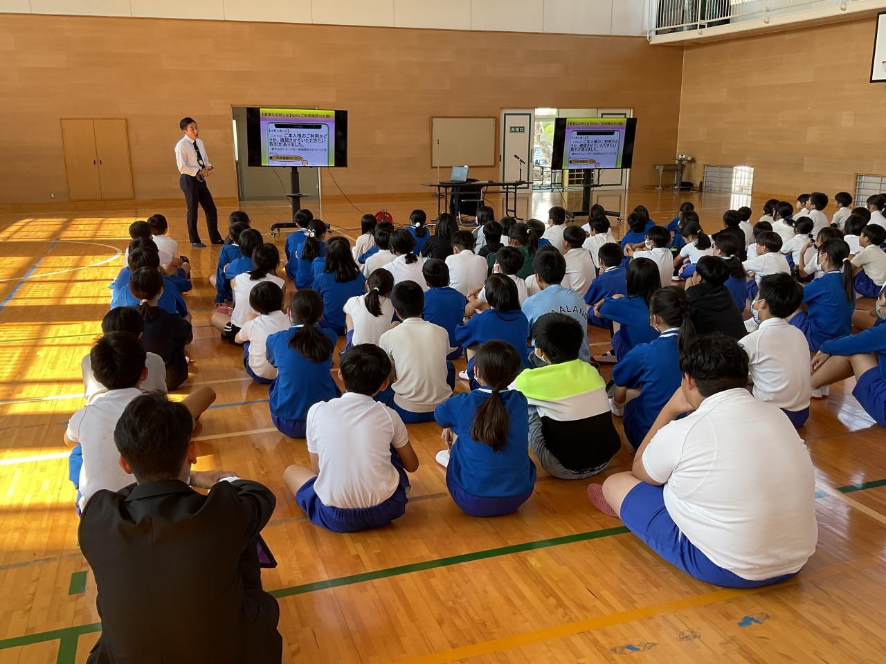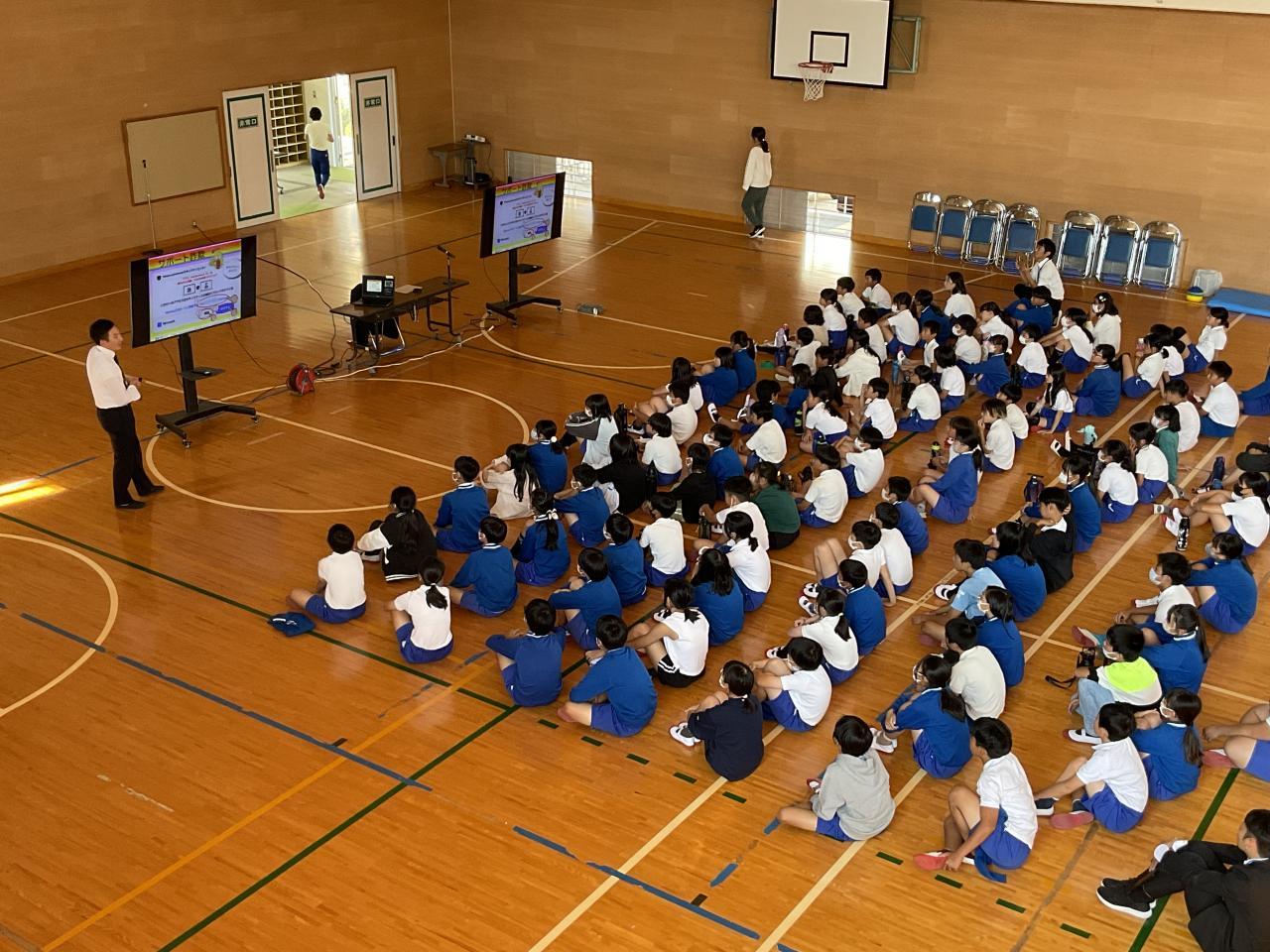 5校時は5・6年生合同でデジタルシチズンシップ学習。兵庫県警サイバー企画課の方に、インターネット上の罠を紹介していただきながら、自分や家族、友だちを被害者にも加害者にもしないような安全な使い方について考える機会になりました。