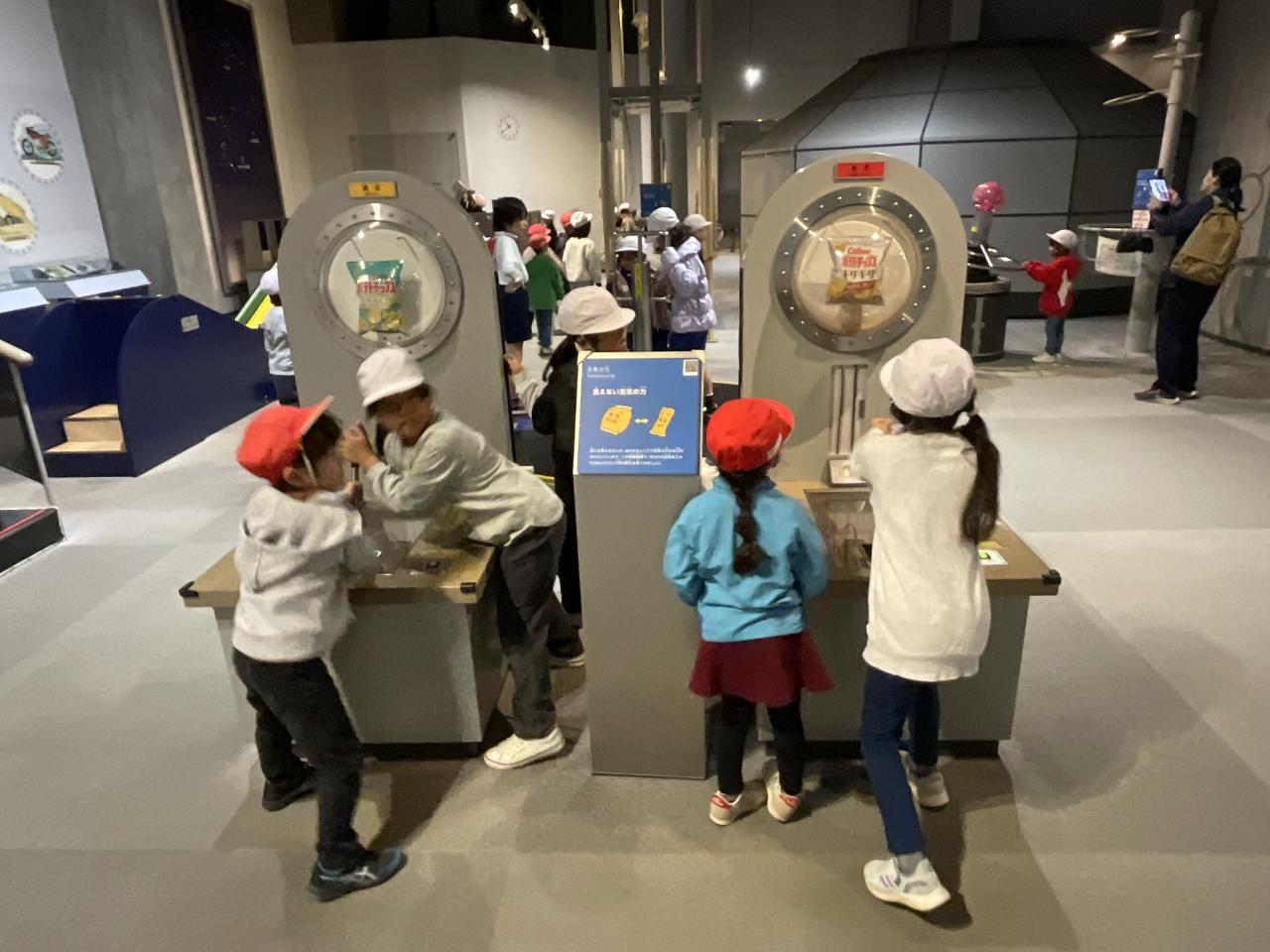 クラスごとの記念撮影をしてから1・2年生が混じった班に分かれ、まずは子ども科学館へ。たくさんの展示物と実験装置を存分に楽しみました。
