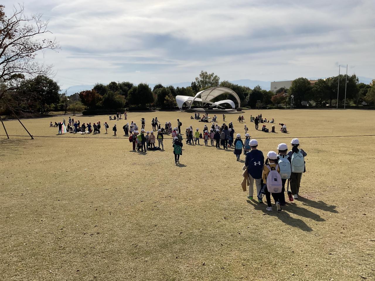 2年生が先輩ヅラして一方的に指図する姿は全くなく、どの班も1年生たちの立場になって優しくリードしてくれていました。「そっち揃ってるぅ?」「どこまで自由にさせたる?」「(自由に動く)この子はちゃんと見とかなあかんなぁ」なんて、まるで先生たちのような会話。混み合ったトイレでも「1年生の子、先に行きぃ」って。帰りの集合時間間際は、それに気づかずに広場に残っている子に声をかけて回ってくれている人も。2年生たちの責任感にあふれた、とっても頼もしい姿が見えました。