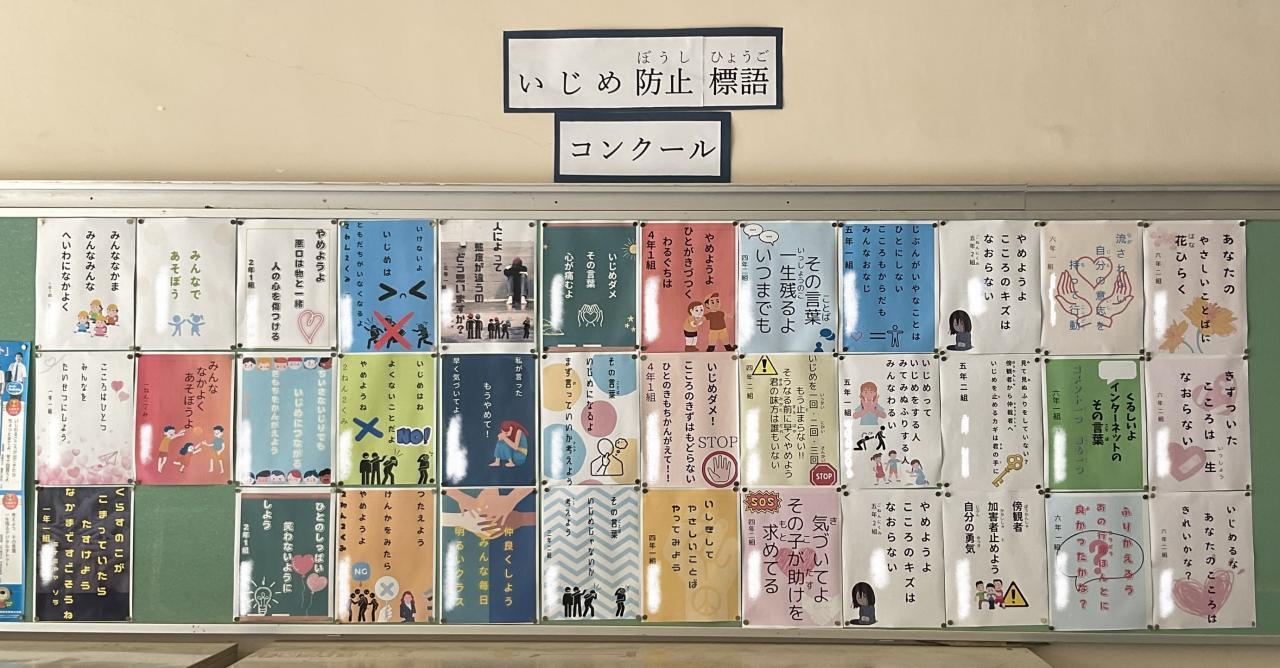 児童会が主催のこのコンクールは全校生が応募して、各学年で選ばれた6作品が東昇降口に掲示されています。