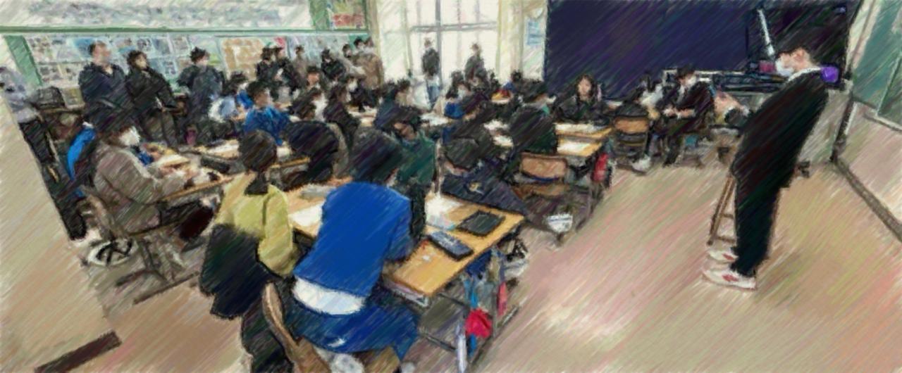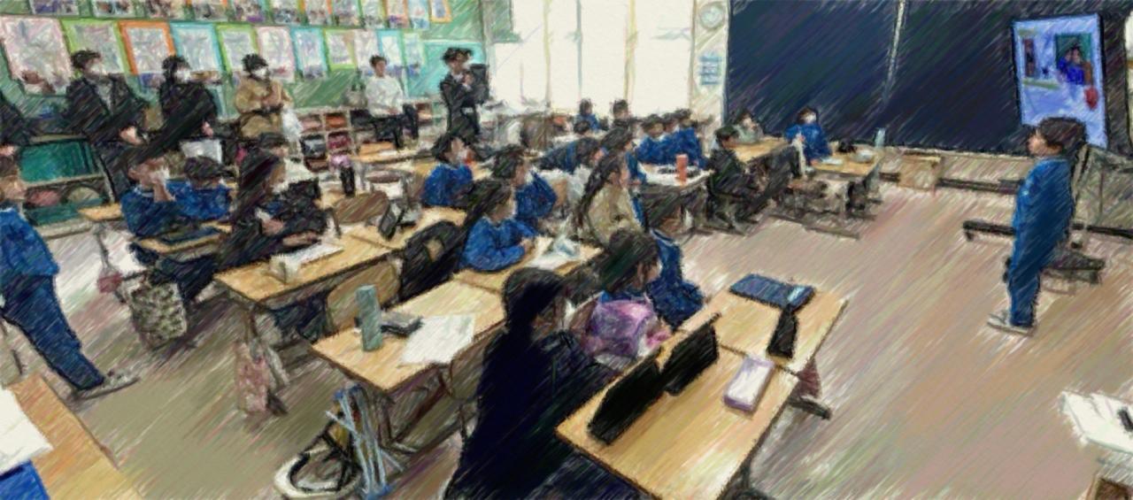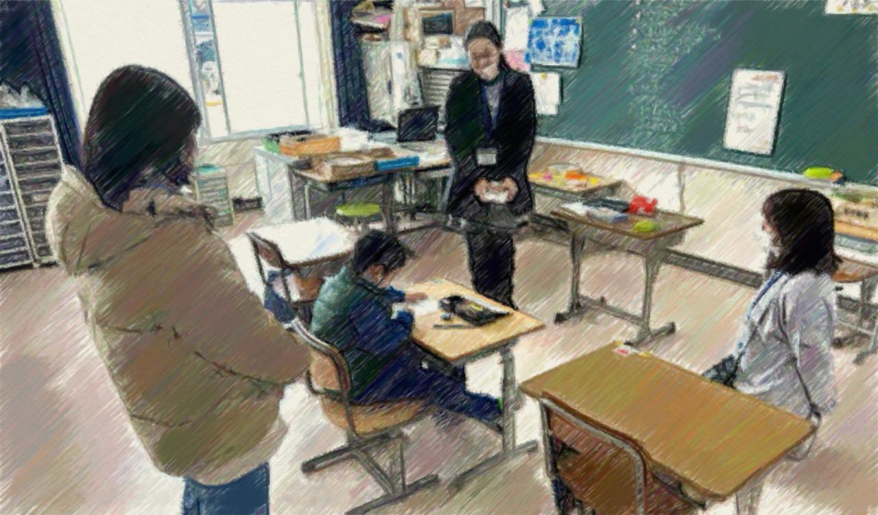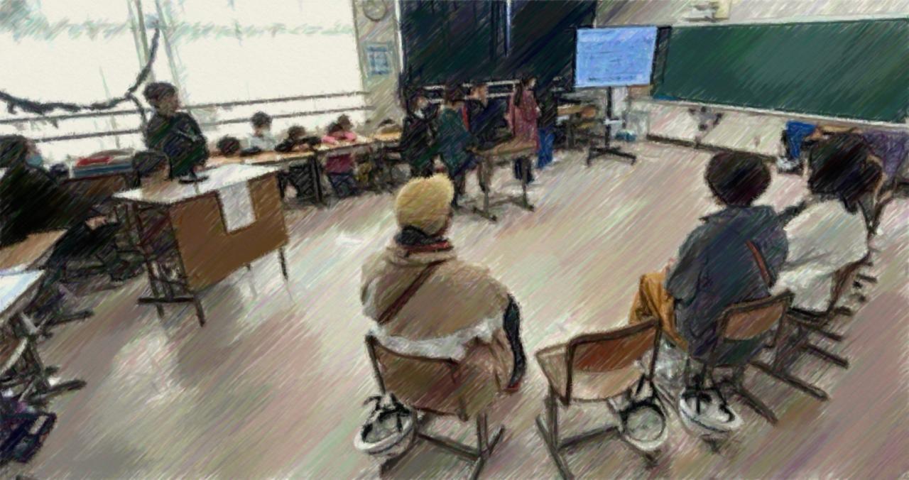 3クラスの学級閉鎖に加え、他の学級でも体調がすぐれずに欠席している人も多い中での、オープンスクール。子どもたちの学習に様子をご覧に、保護者以外の地域の方々も足をお運びくださいました。