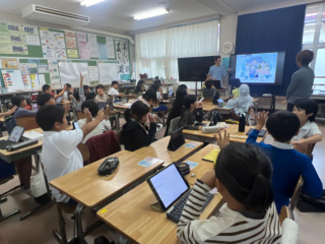 子どもたちは、自分の名前の手話での表し方を教わりました。また、友だちの名前と似ているところや違うところを発見するなど、充実した表情をしていました。