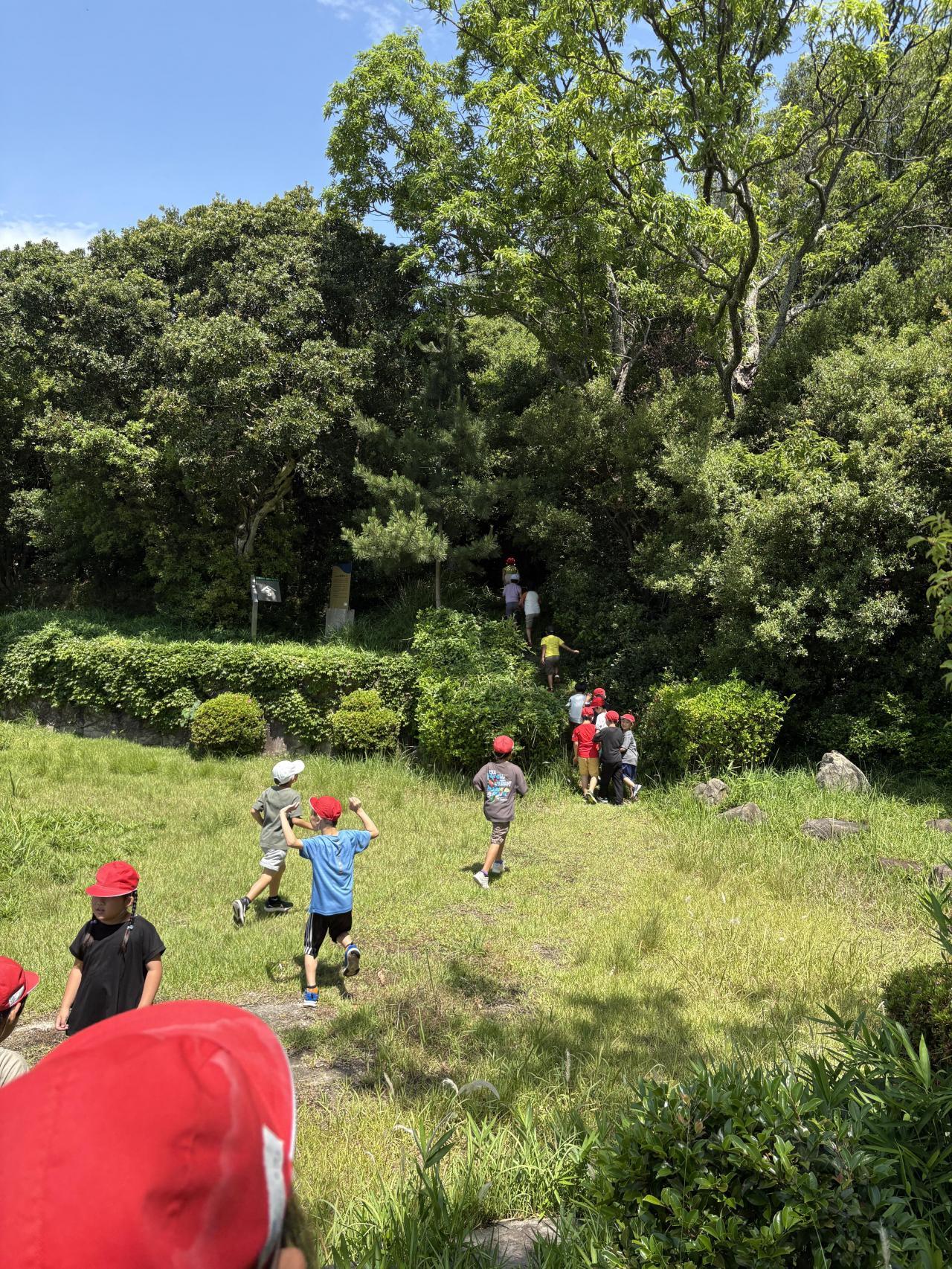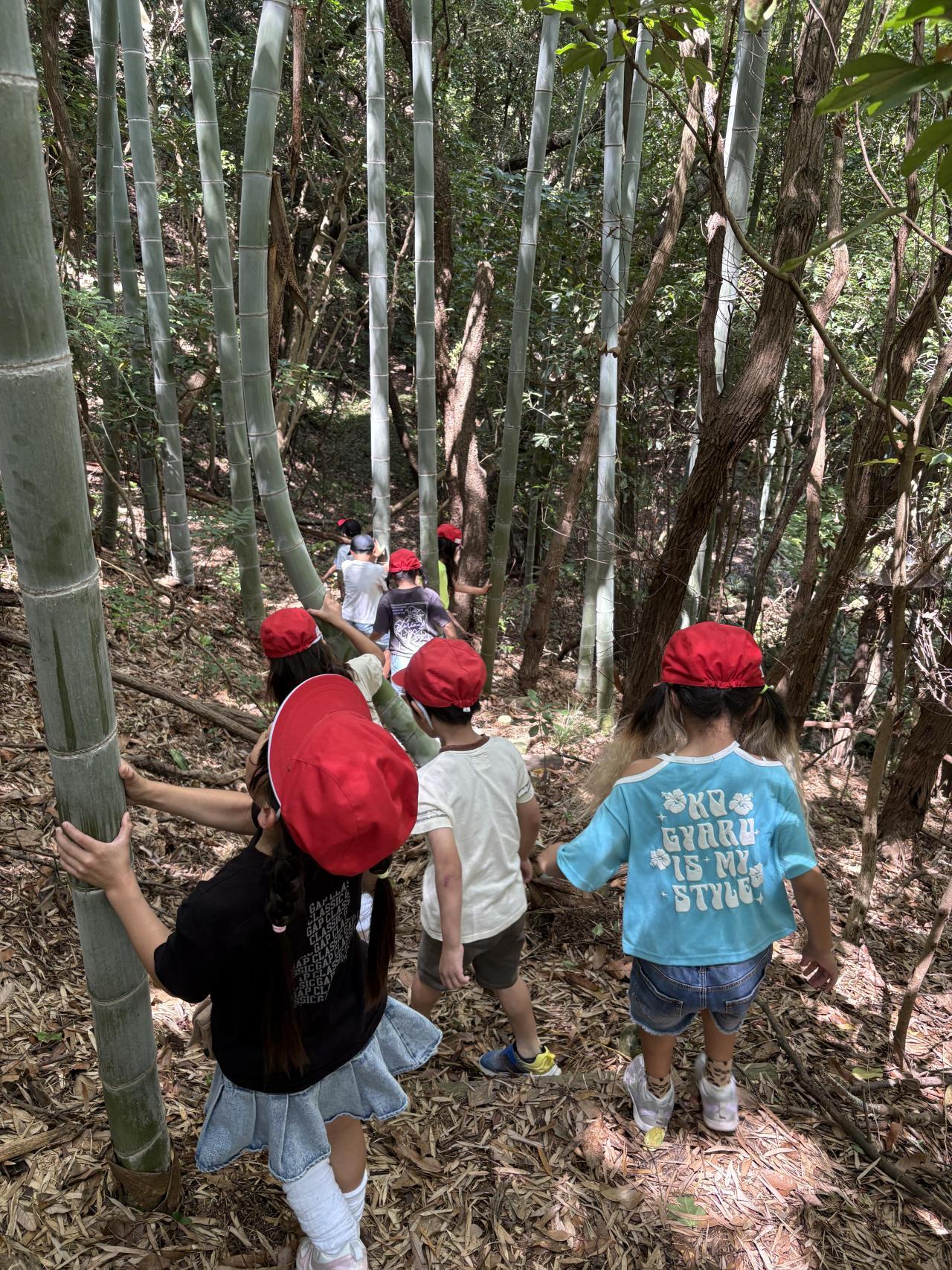 自然と触れ合う経験をすることは、子どもたちにとってとても大切なことです。「暗くて怖い」と言っていた子も森の暗さや涼しさを、体と心で感じ、最後は「楽しい!もう一回行こう!」と。帰りには「明日も来たい」と。自然って不思議な力。
