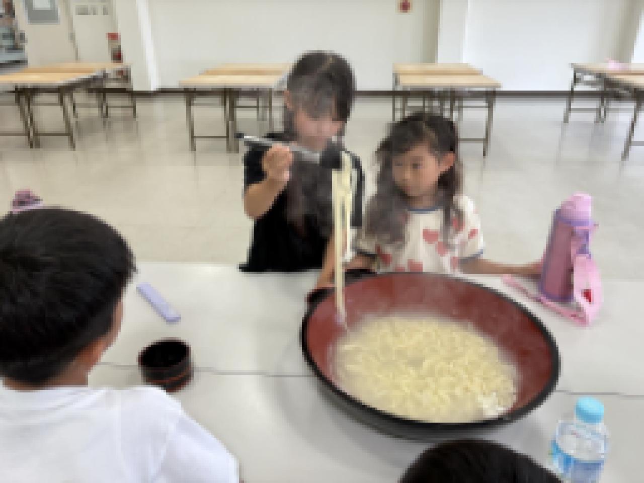 昨日は、ふるさと学習でウェルネスパーク五色に行きました。うどん体験では、自分たちで作ったうどんをその場で食べて、「おいしい!」と叫んでいました。😄おうちの人が作ってくれたおにぎりとうどんでお腹も幸せいっぱい満たされて、その後の探検や遊びも盛り上がりました!