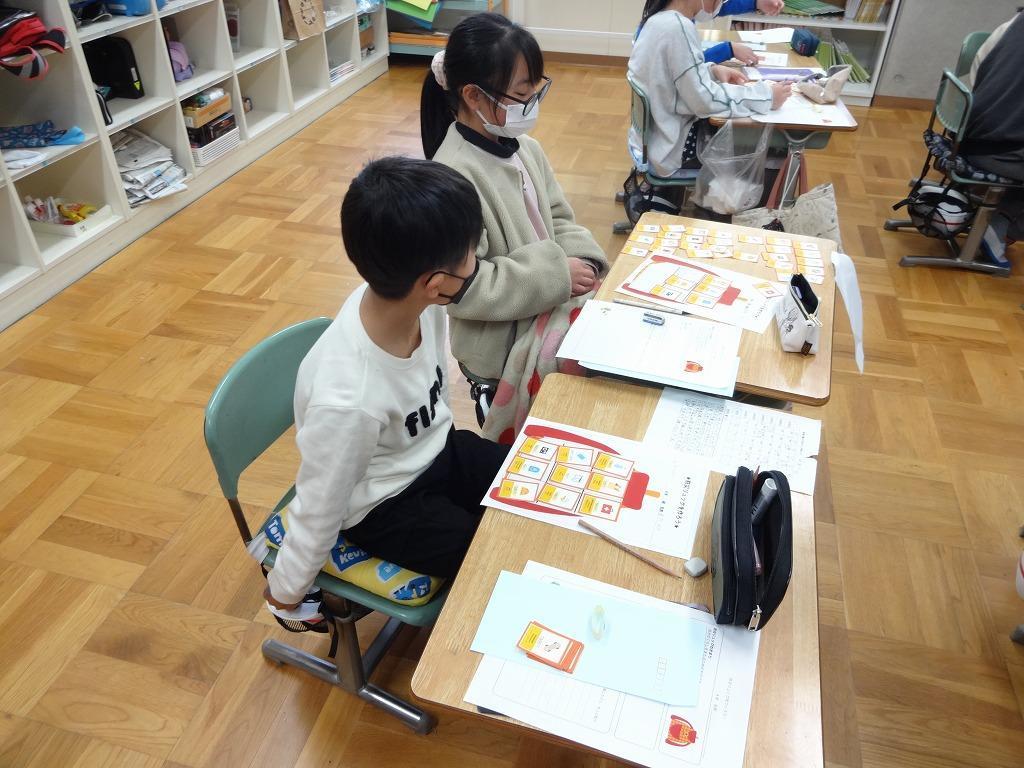まず、ペアで選んだ理由を発表し合ったあと、タブレットに向かって、講師の先生に発表しました。