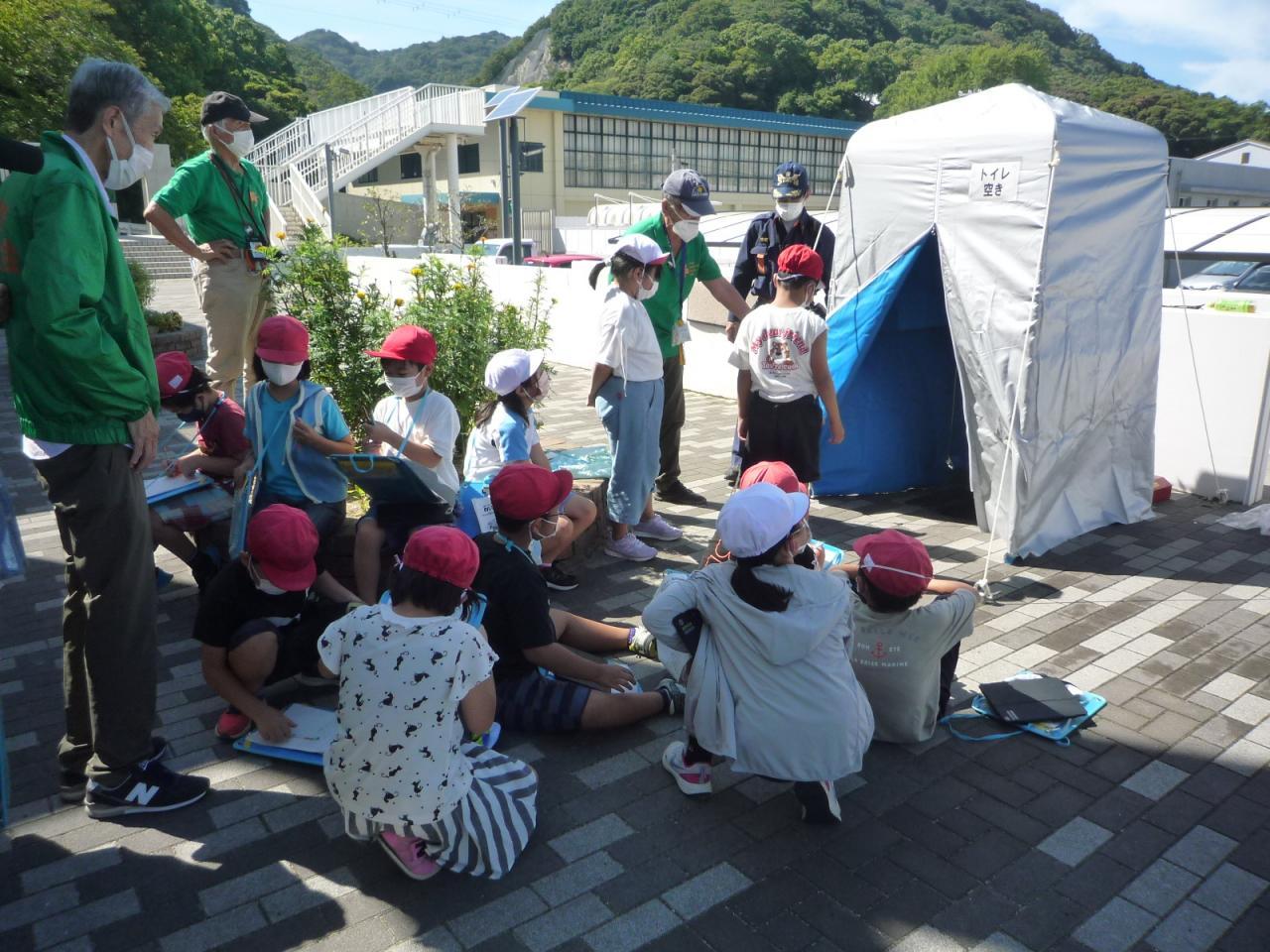 午後には、由良小にあるマンホールトイレや