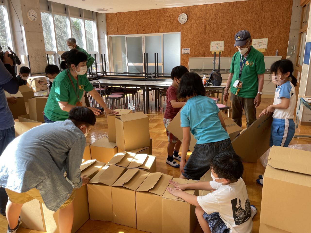 プールの水を浄化する機械、ダンボールベッドの組み立てなど