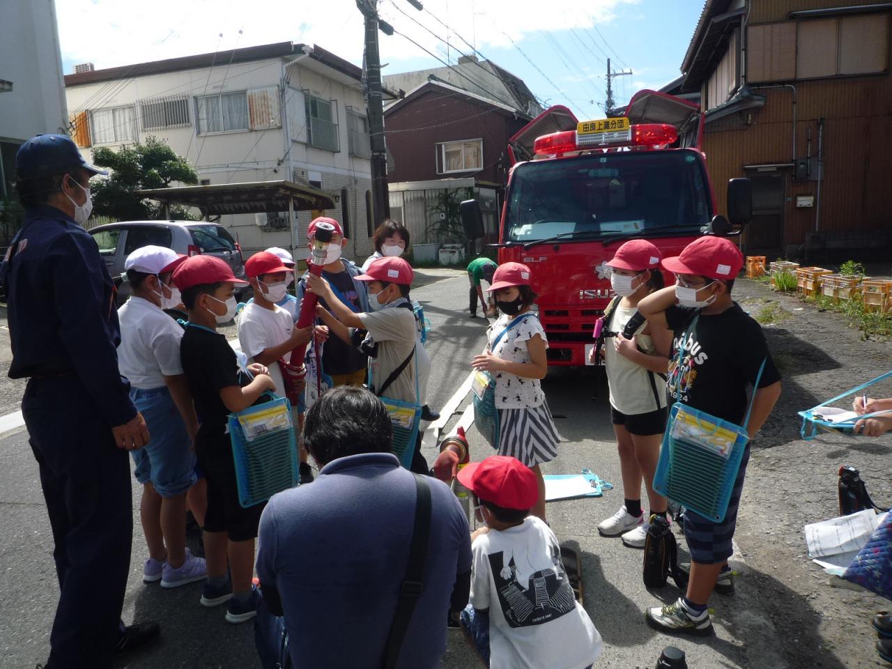 消防団の方には『消火栓』内の様子や、火事の時にホースをどうつなぐのか、消防車のポンプなど、貴重なお話をお聞きすることができました。