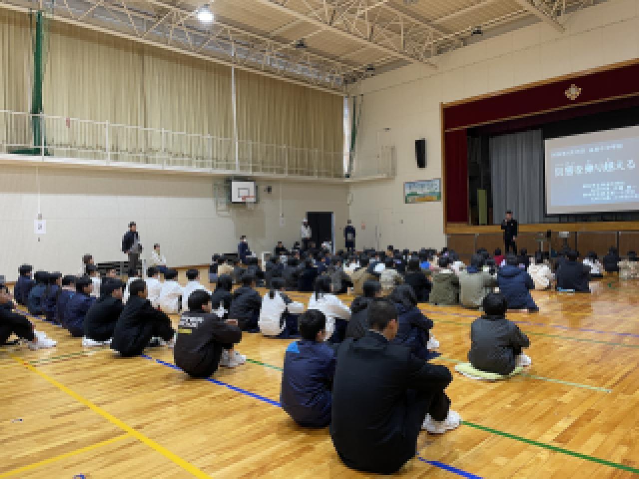 由良中学校の風紀委員からの防災クイズを行った後、
