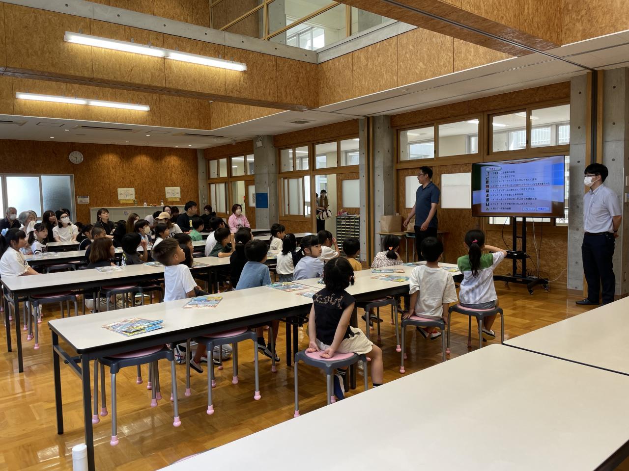 安全にネット社会を生きるために大切なことを、児童と保護者の方々にも一緒に聞いていただくことで、家庭でもその話題を共有していただきたいと考え、実施しています。