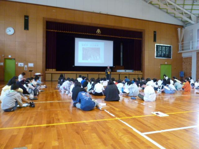 5月19日なかよし班活動は、あいにくの雨天でしたので、雨バージョンに内容を工夫して実施しました。自分たちが住んでいる安乎について知るをねらいに、安乎の蓮華寺のご住職を講師として招聘し、五百羅漢について、そして人としていきるために必要なことについてお話していただきました。