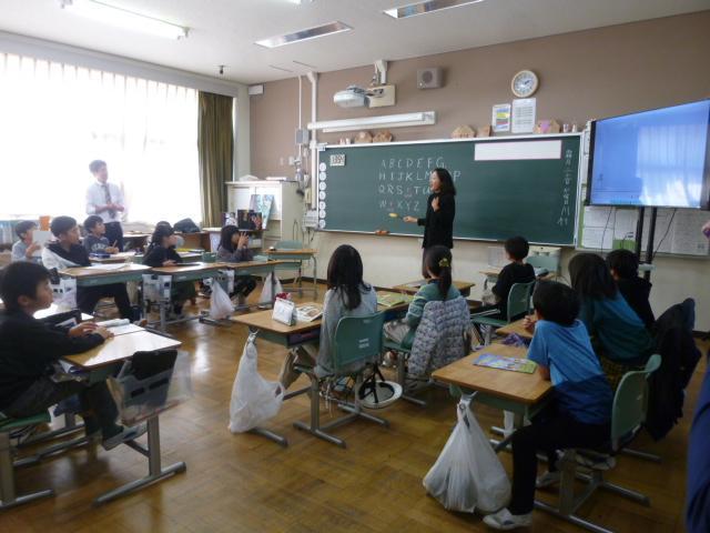 11月22日には、神戸市外国語大学の教授を講師に招聘し、外国語の授業をしてもらいました。4校時、6年外国語では、中学校への橋渡しをテーマに、そして、5校時、3年外国語活動では、アルファベットを題材に、はっきりしっかりと対話をすることを中心にをテーマに、児童に授業をしてくれました。講師の先生とは、初めての出会いでしたが、子どもたちにはしっかり学ぼうという姿勢が見られ、有意義な時間でした。
