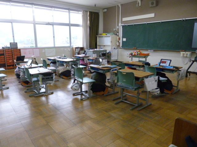 児童には、地震が起こったら頭を守ること、そして、被害を少なくするために、普段から、「気づく」「考える」「行動する」を意識して生活することが大切であるという話をしています。