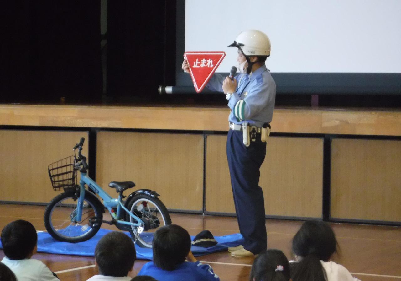 前半は、体育館で「交通ルールの基本」と「自転車運転の基礎知識」について学びました。後半は、4~6年生は教わったことの確認テストを1~2年生は、運動場で歩行訓練を3年生は自転車訓練を行いました。