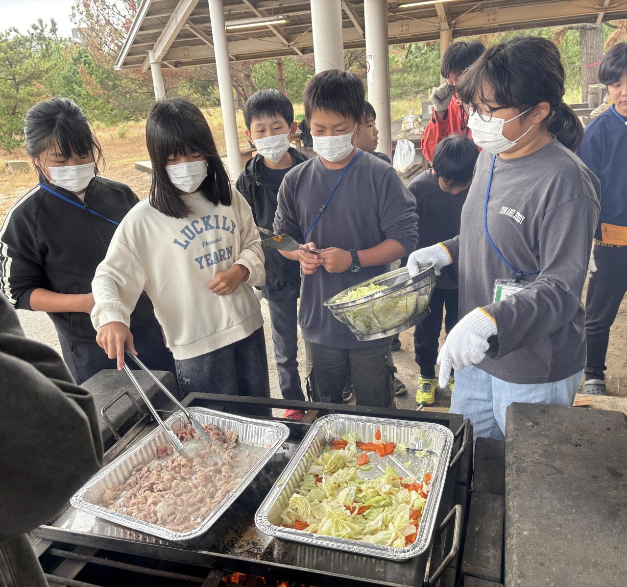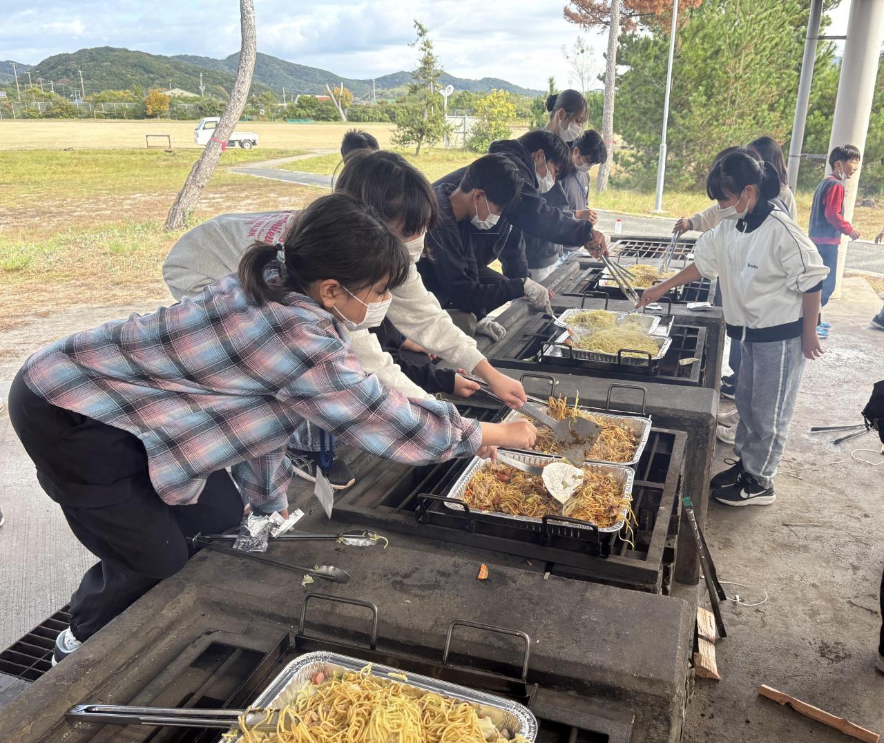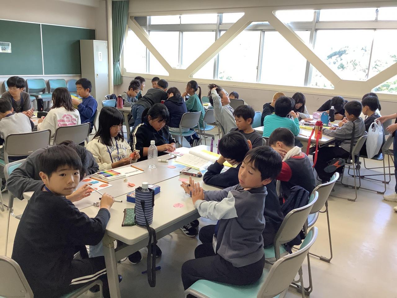 今朝は小雨が降っていたため、体育館で朝のつどいを洲一小・安乎小と南あわじの賀集小学校の3校で行いました。つどいの中で、自己紹介をするゲームがあり、賀集小学校の児童とも交流できました。野外炊飯(焼きそば作り)は、スムーズにでき、片付けも、みんなそれぞれが、役割を果たしながらお互いに声をかけあい行いました。その結果、施設の方から「こんなにキレイに片付けしてくれた団体さんは久しぶりです。」とお褒めの言葉をいただきました。夕食も終わり、この後、入浴を済ませると、いよいよ19:15~キャンドルのつどいです。みんな元気に頑張ってます。