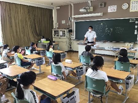 新型コロナウイルスの感染拡大に伴う緊急事態宣言が発令中での2学期のスタートとなりました。始業式は密を避けるため、『オンライン』で実施しました。子どもたちには、登校前の検温、手指消毒、換気、正しいマスクの着用等を心がけて過ごしましょうと話しました。異学年交流の制限や放課後はあそばない等、感染防止対策のさらなる徹底を行いながら教育活動を進めていきます。また、感染症対策の一環として、健康観察カードをデジタル化し、登校前に児童の健康状態を把握させていただきます。詳しくは、本日配布のプリントをご覧下さい。