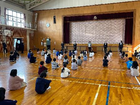 着任式では、児童代表が、「一生懸命楽しい学校を作りますので、これからよろしくお願いします。」と歓迎の言葉を述べました。