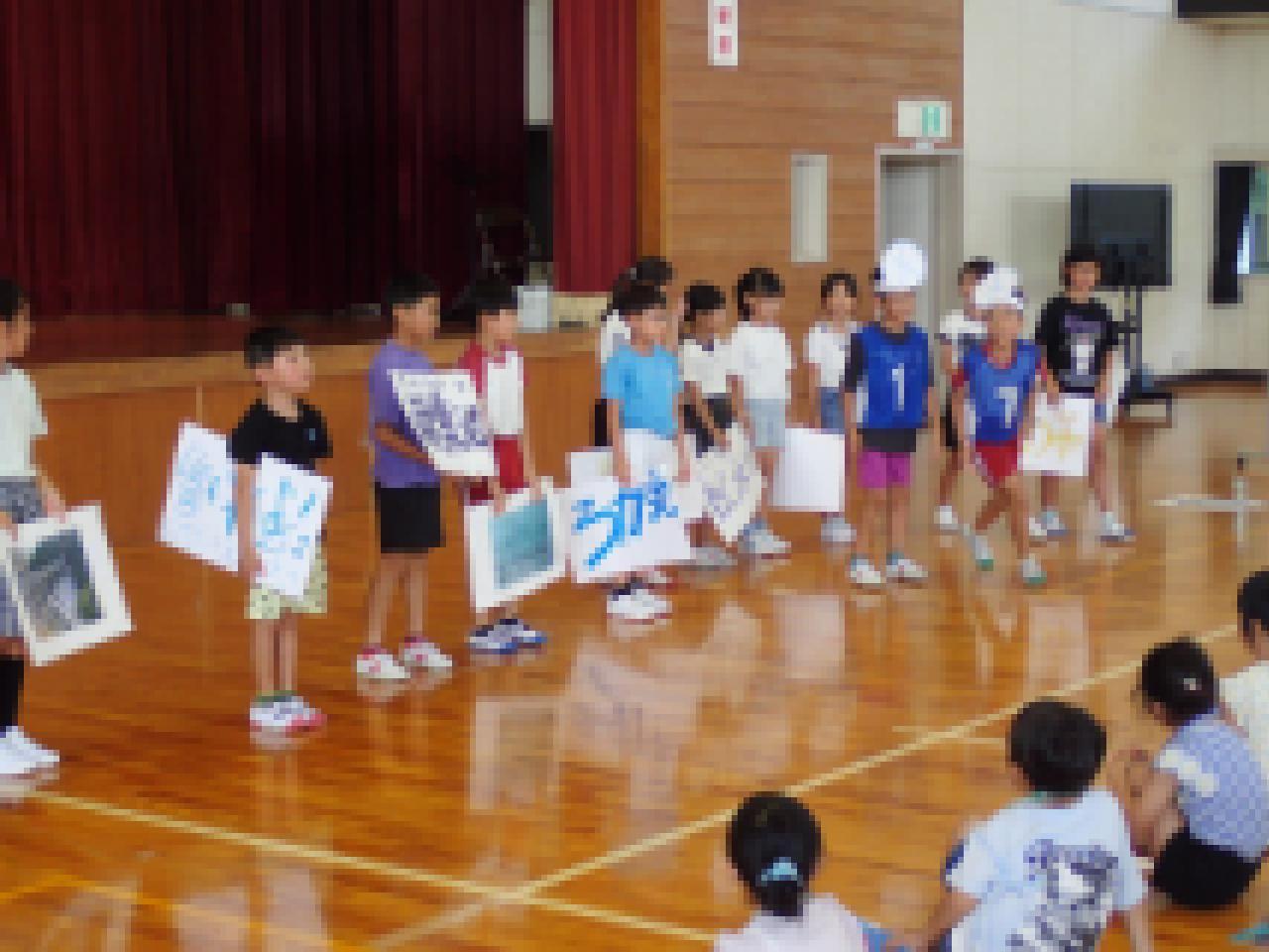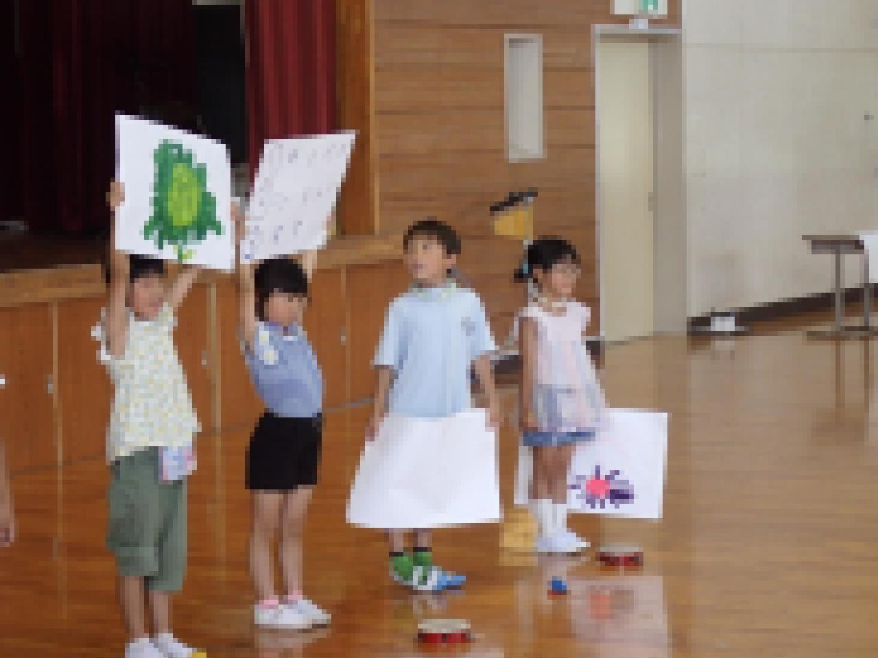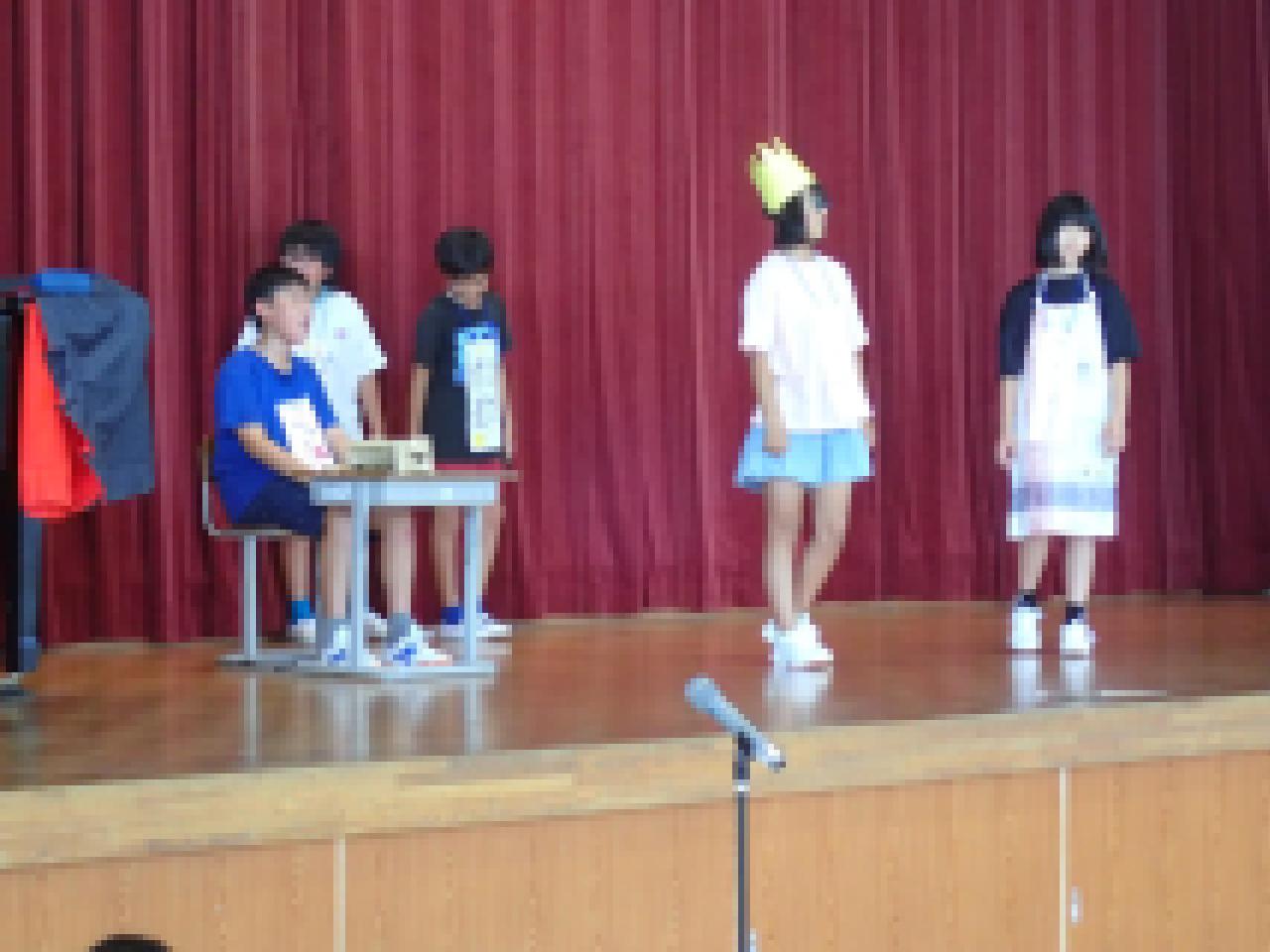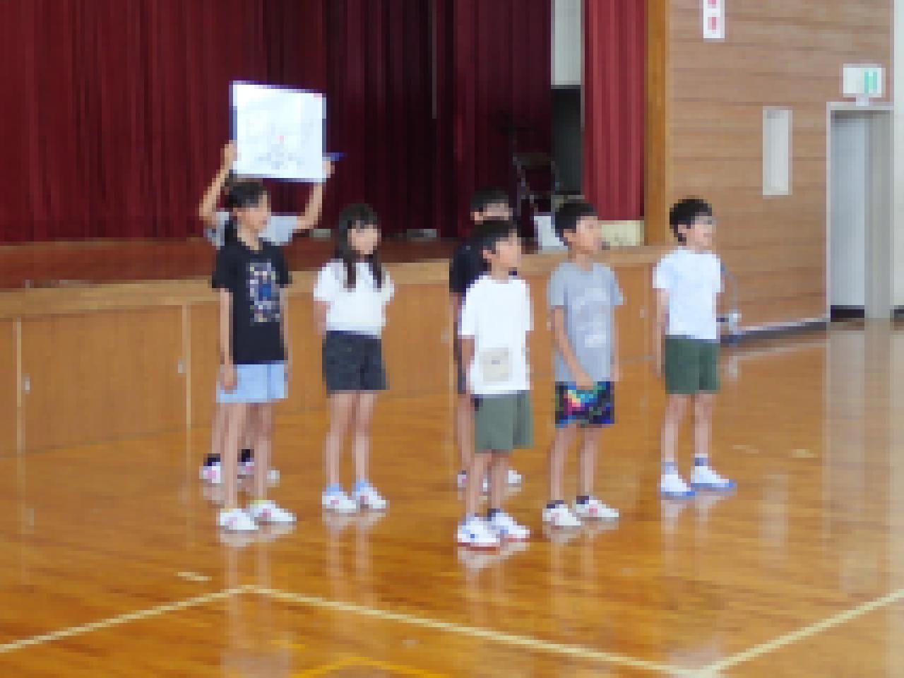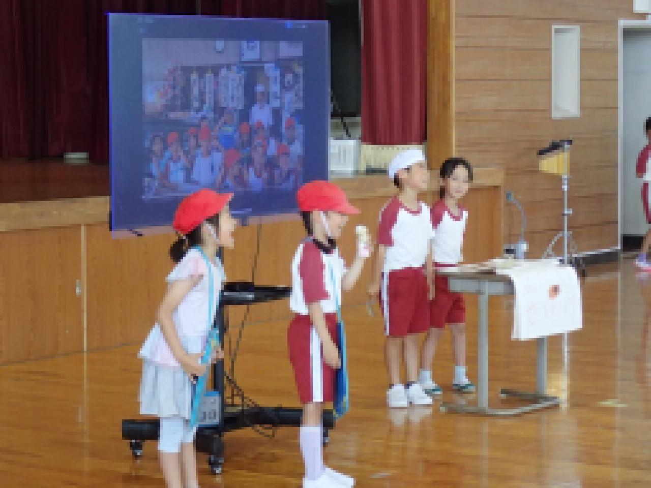 本校の児童も、もっともっと学びを深めることができるよう、1学期に学習したことの一部を、全校生の前で発表しました。