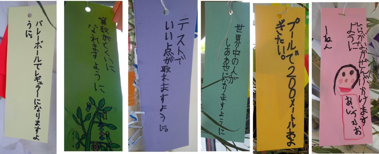 前の集会では、短冊に思い思いの願い事を書き、作った飾りつけを飾り、星に願いを込めました。