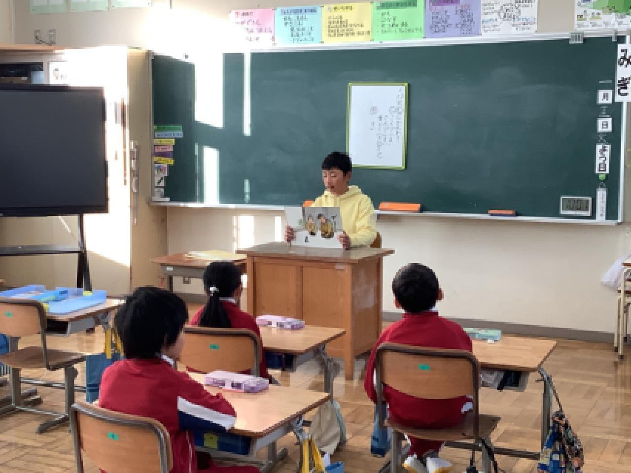 本に親しみ、活字ならではのおもしろさを感じ取ってもらうため、図書委員会の児童が各クラスを回り、本の読み聞かせを行っています。