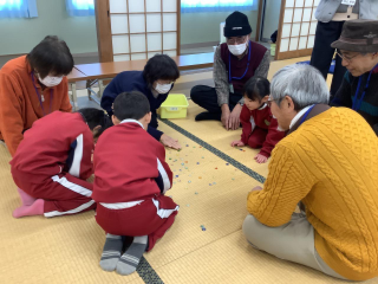 最近の子どもたちの遊び方は、携帯型ゲームやスマホアプリのゲーム、自分の好みのジャンルの動画配信を観賞する、といったことが主でしょうか。放課後子ども教室でボードゲームやおもちゃで友だちと一緒に遊んだり、卓球などのスポーツを楽しんだりもありますが、今回は、おはじきやお手玉といった、昔ながらのおもちゃで一緒に遊びました。遊び方はいたってシンプルで、少し慣れも必要ですが、年齢問わず遊べるところが魅力ですね。学校でも、友だちと一緒に遊んでみてください。昔のおもちゃ、いくらかは学校にもありますよ。